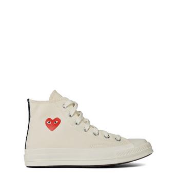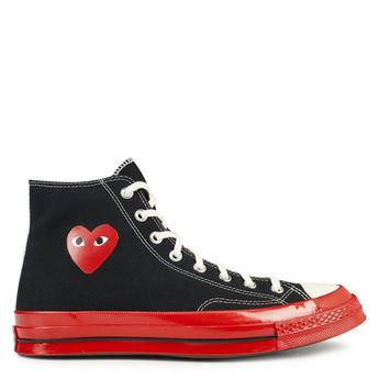 Elevate your footwear game with Comme Des Garçons trainers, adding a playful charm to your collection. Among the standout options are the Comme Des Garçons Converse trainers, a collaboration that fuses classic sneaker design with innovative flair. Discover various cuts and styles, including sleek black and vibrant ruby red options, each adorned with the iconic peeping heart motif. This whimsical detail and contrasting banding allow you to showcase your personality through your footwear. For a contemporary urban aesthetic, consider opting for Comme Des Garçons trainers in platform styles featuring monochromatic finishes and mesh panelling that ensures breathability and flexibility. These versatile trainers effortlessly pair with joggers and hoodies, crafting the ultimate streetwear-ready look. Embrace the unique blend of style and comfort with Comme Des Garçons trainers, perfect for those who wish to make a bold statement with every step.