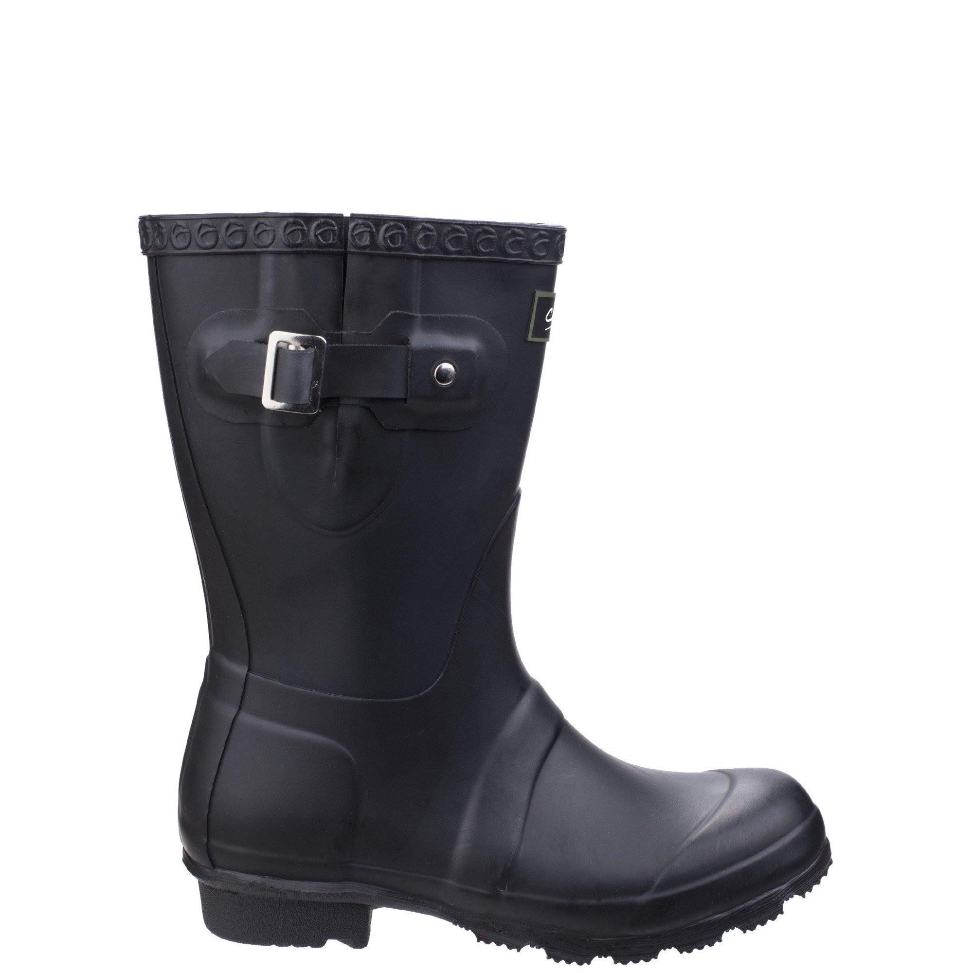 Ladies short waterproof wellington with adjustable wide fit at the calf. A practical lightweight fashion wellington.