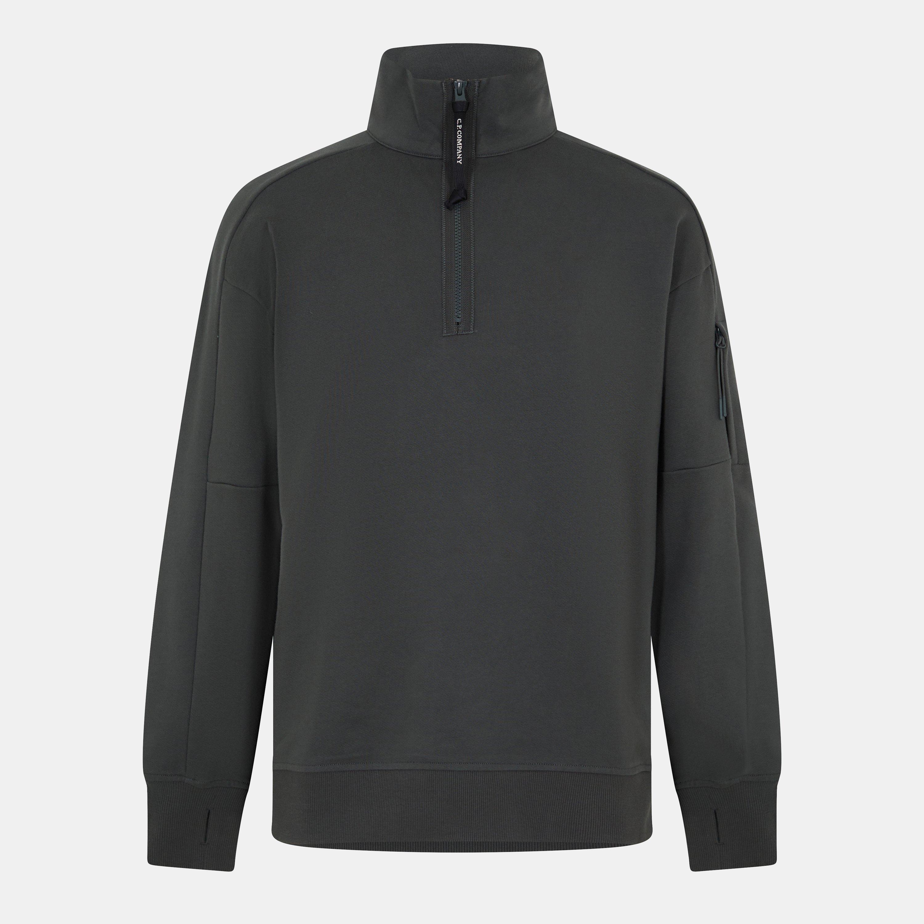 Technical innovation meets casual style in this C.P. Company quarter-zip fleece top. Distinguished by the signature lens detail on the arm, this contemporary design showcases the brand's commitment to functional sportswear. The high neck and quarter-zip closure provide adaptable warmth, while the clean lines and minimal aesthetic maintain the brand's signature understated approach to luxury casualwear.