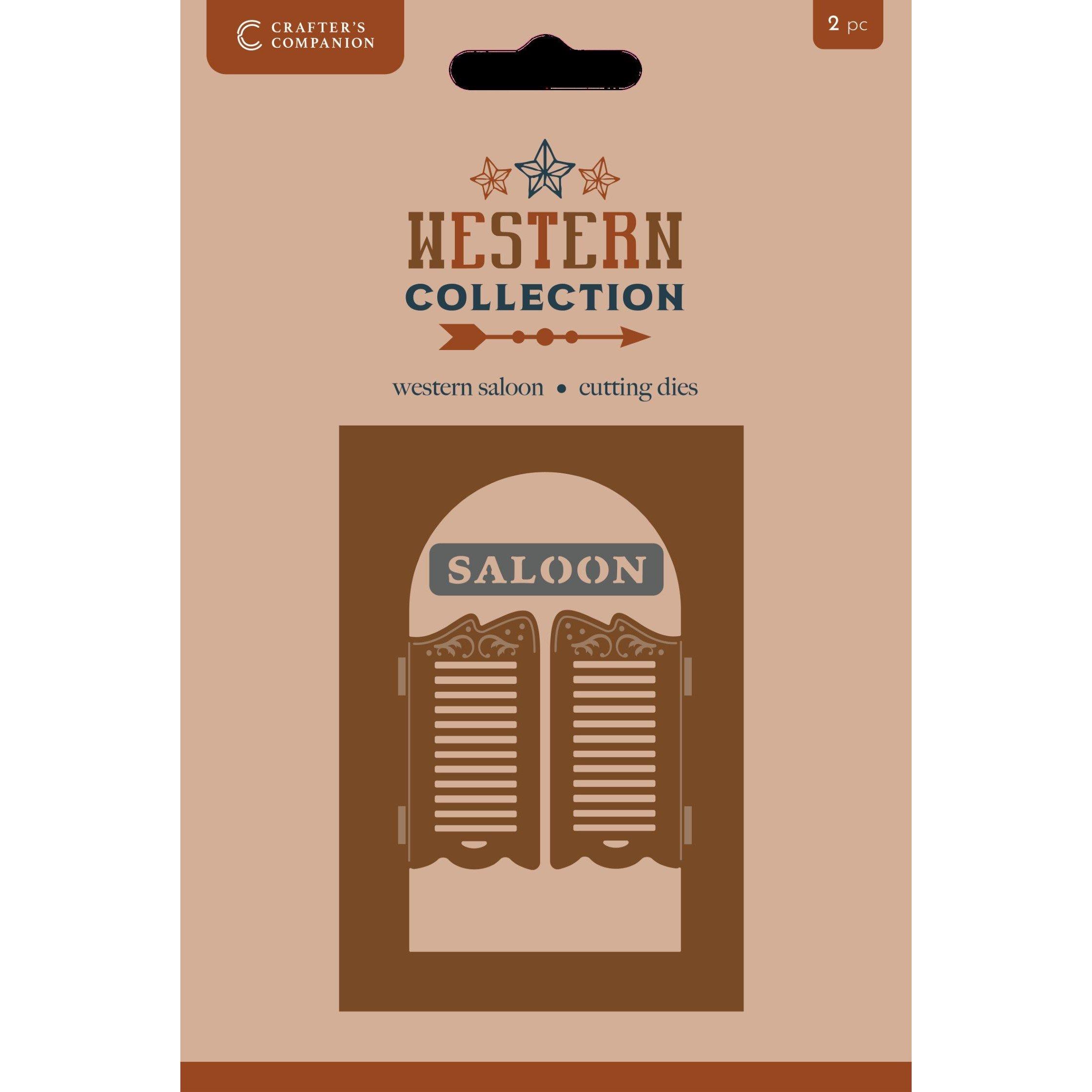 Step into a Western Saloon with the Metal Die Create-a-Card set from the Crafter’s Companion Western Collection. This 3-piece set creates the classic look of a saloon double door for your wild west-themed handmade greeting cards, scrapbook pages, gift boxes, and more.
