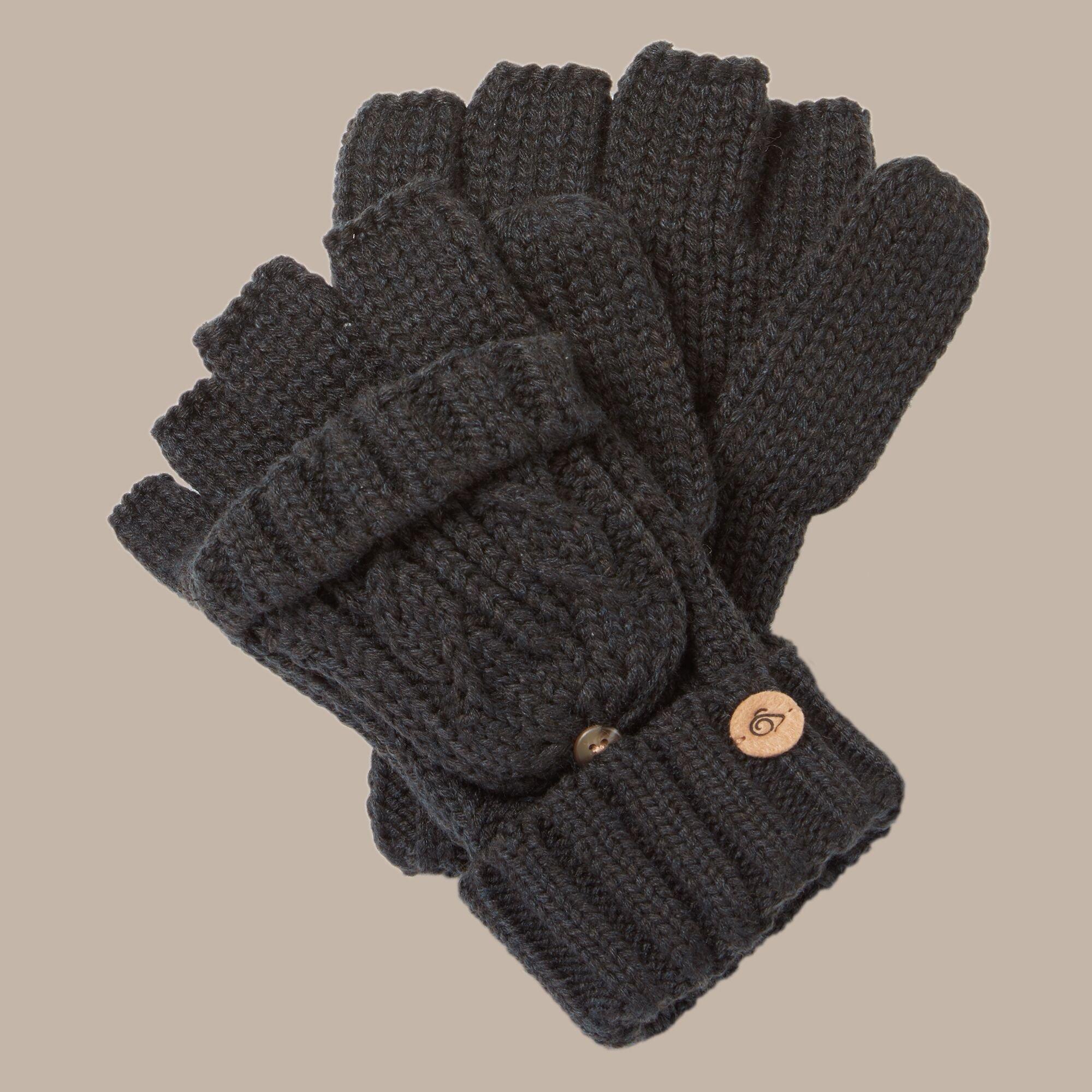 Knitted acrylic mittens from Craghoppers. These versatile.Brock, fingerless gloves have button-back mitten ends and turned-back ribbed cuffs.
