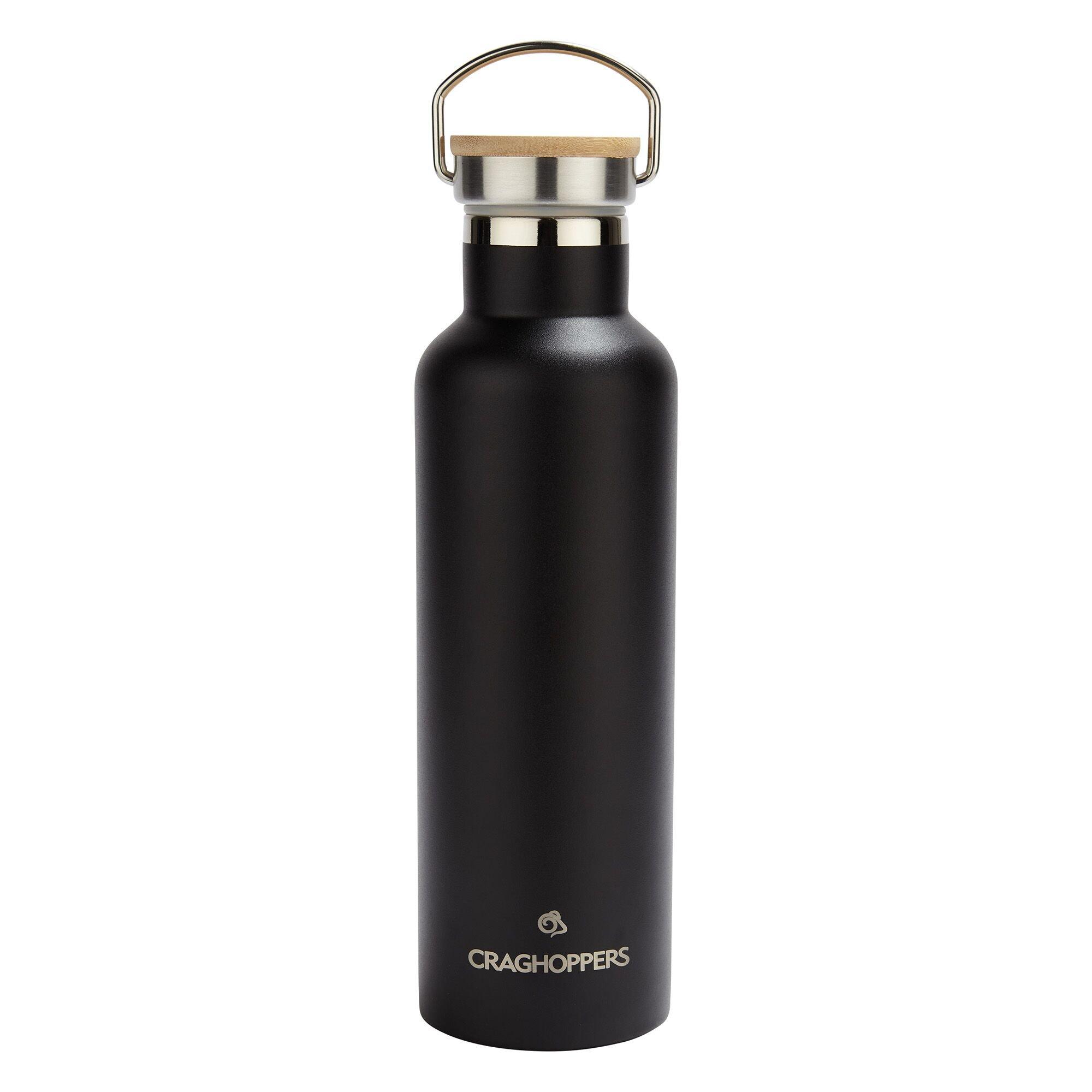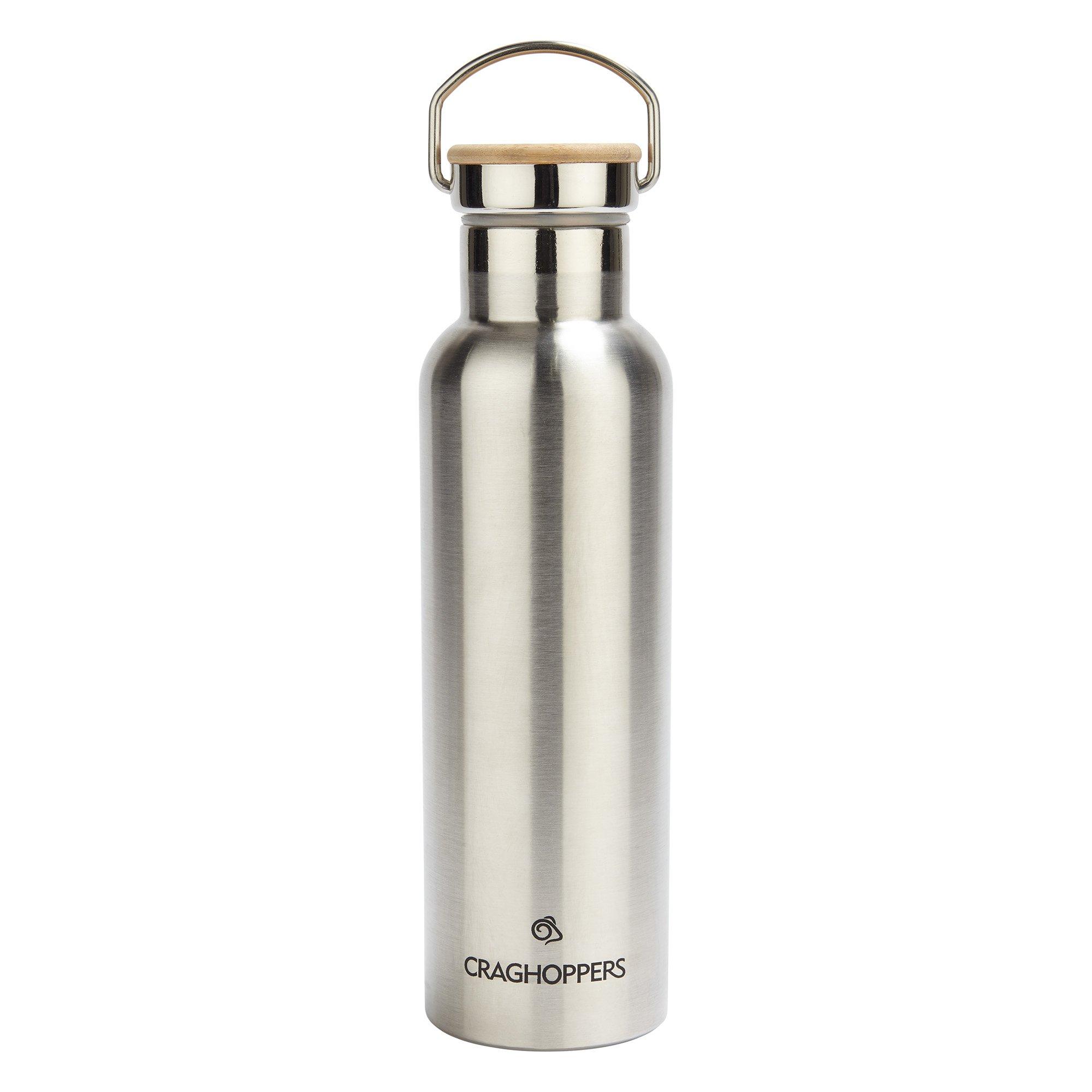 Insulated water bottle from Craghoppers. Keep liquids piping hot or ice-cold with this sturdy Insulated Water Bottle. The dual-walled stainless-steel bottle has a snug-fitting bamboo-topped lid and a 750ml capacity. The grab handle makes for easy transportation.