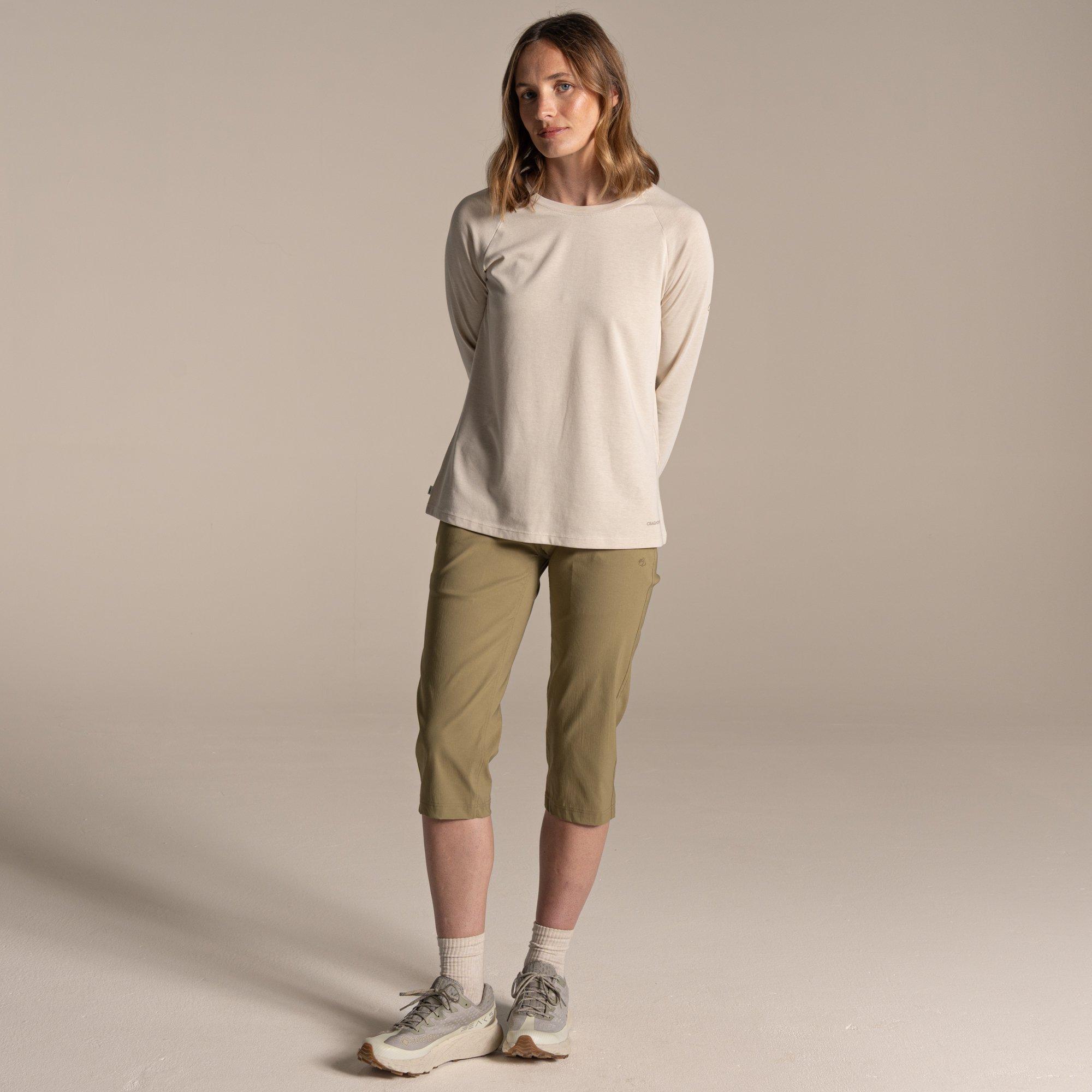 Stretch cropped-leg outdoor trousers from Craghoppers. These fine-weather adventure favourites are the just the job for milder conditions. The sun-protective, full-stretch fabric of Kiwi Pro III Crops gives you the freedom to stride out with confidence. A great partner for an active tee or short-sleeved shirt. Repels rain & water based stains/ H2OShield durable water repellent finish (at least 50 plant based & PFAS compliant)/ NosiDefence fabric helps create a barrier to biting insects/ Stretch/ Sunglasses wipe/ Easy care quick drying fabric