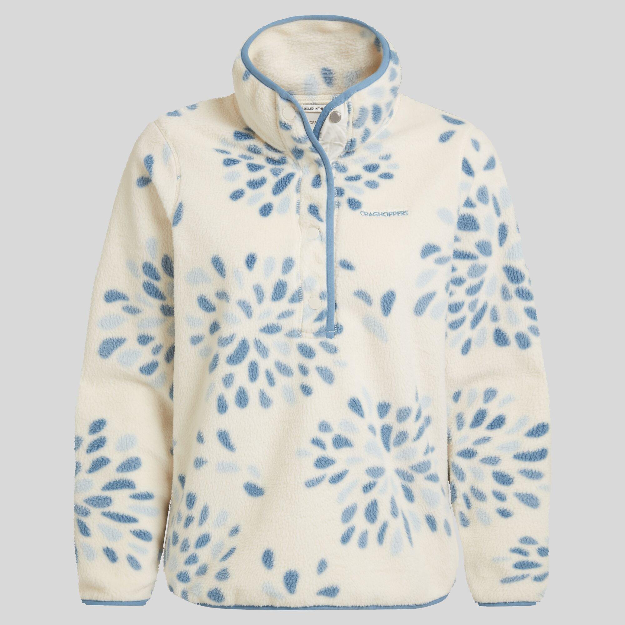 Insulating fleece top from Craghoppers x National Trust Collection. Rosemary offers a relaxed approach to seasonal insulation, pairing deep-pile borg fleece fabric with an abstract printed design that captures the charm of a natural landscape. Overhead styling features a studded neck fastening and contrast elasticated trim. 10% of net sales from this collection will be given to the National Trust to help look after nature, beauty and history for everyone, for ever.