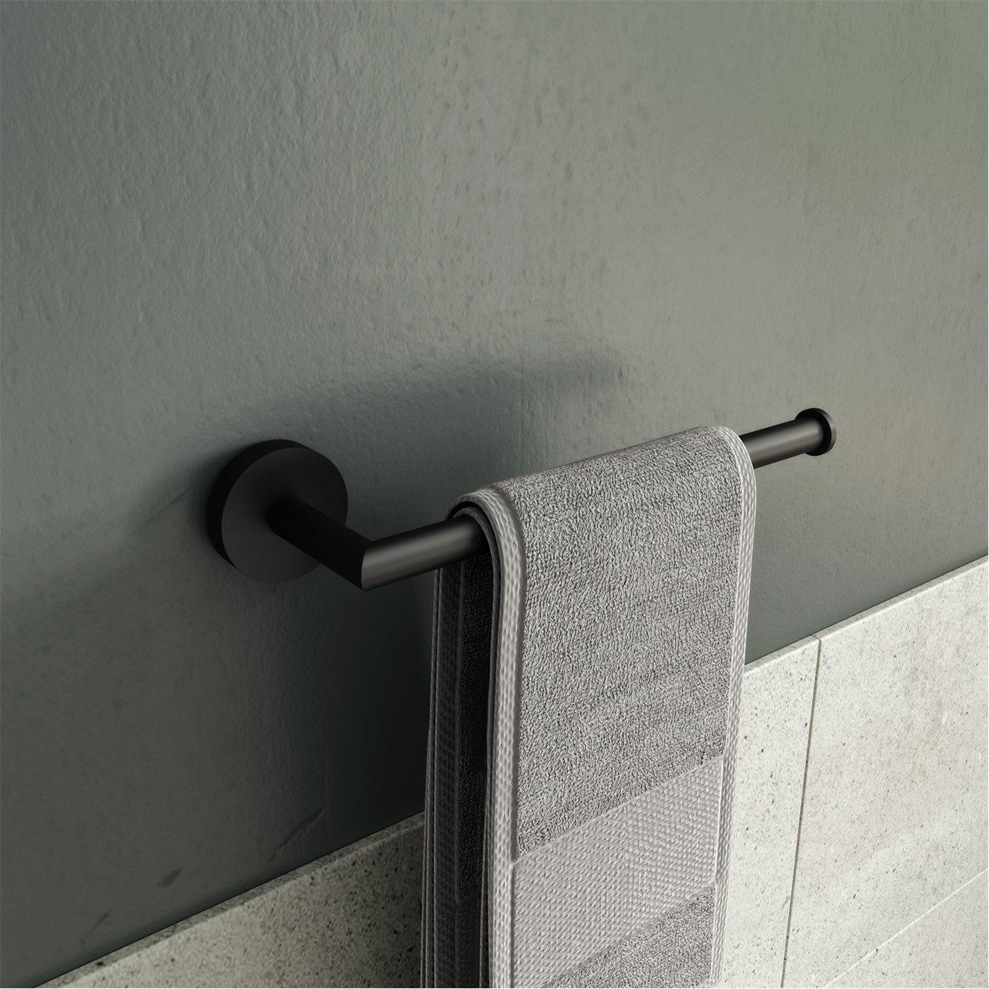 This quality towel rail is part of the Black Epsom range from leading bathroom accessories brand Croydex. The towel rail is manufactured from a durable zinc alloy, and completed with a contemporary matt black finish. The easy to install fixings are all concealed improving the look of the piece.