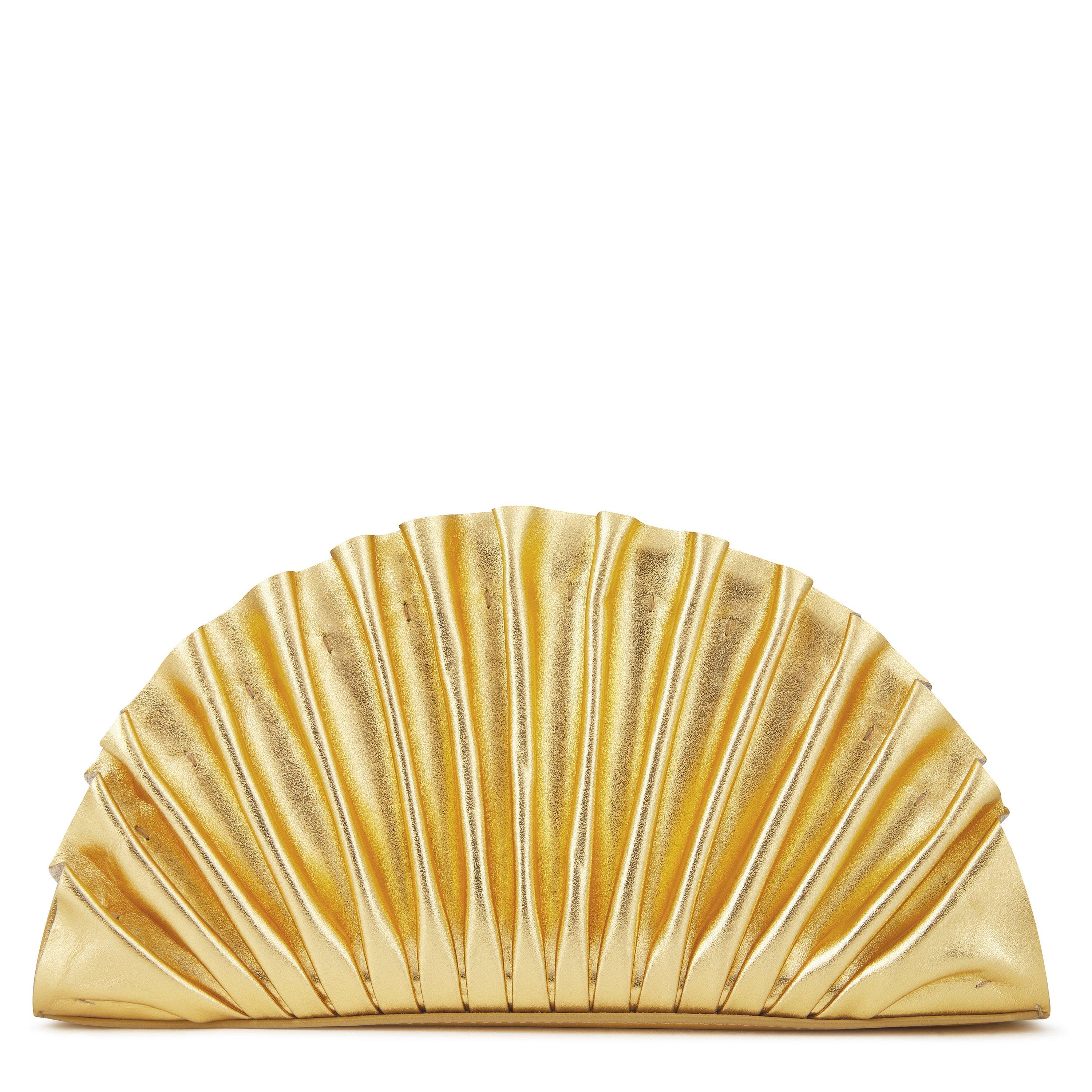 Designed with an artistic flare, the Cult Gaia Nala Mini Clutch has been crafted from a soft metallic-hued nappa leather styled in a fanned-style clutch perfect for adding a statement touch to your collection. With a metallic fastening securing the main compartment, this bag is complete with a Cult Gaia logo embellished to the side. Dimensions: H 13cm x W 27cm x D 6cm