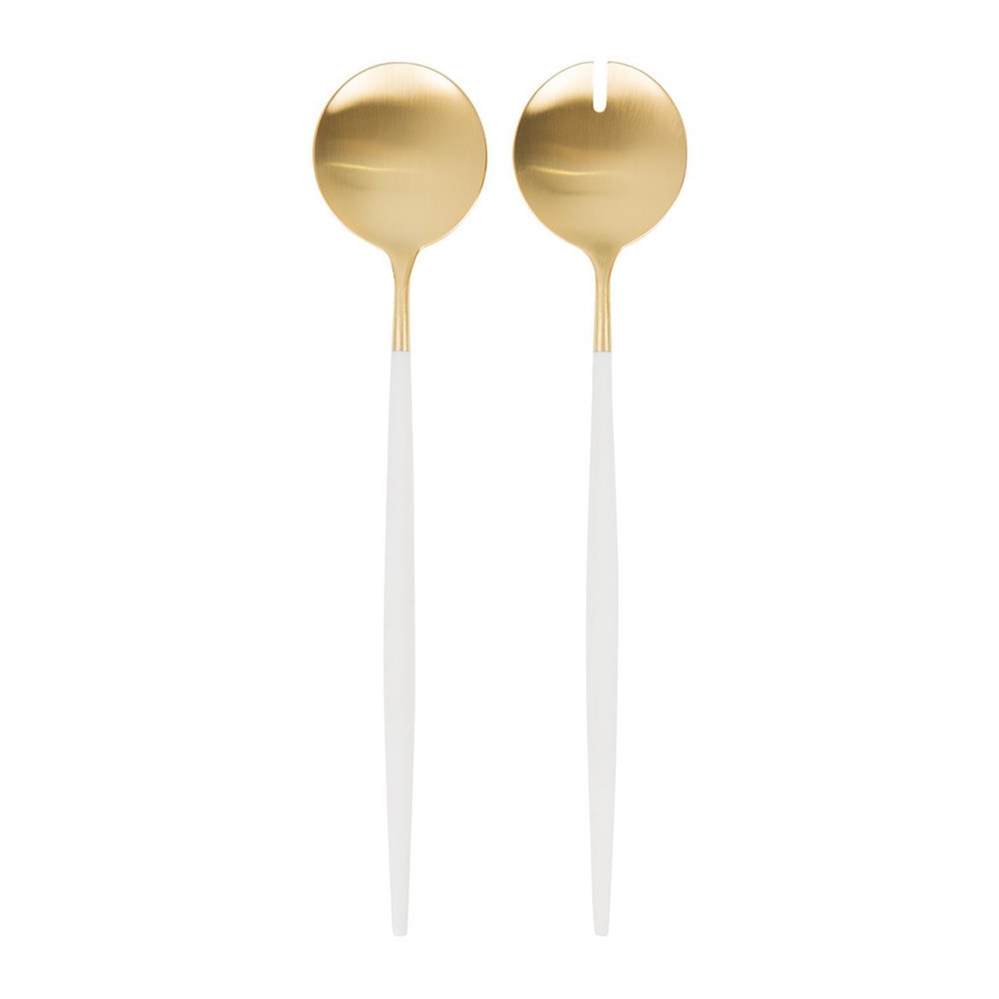 Effortlessly add elegance to the dining table with this Goa salad set from Cutipol. This set includes one salad serving fork and one salad serving spoon, perfect for presenting a delicious salad to guests. With a contrasting resin handle, this modern set can be teamed with further Goa cutlery to complete the look.