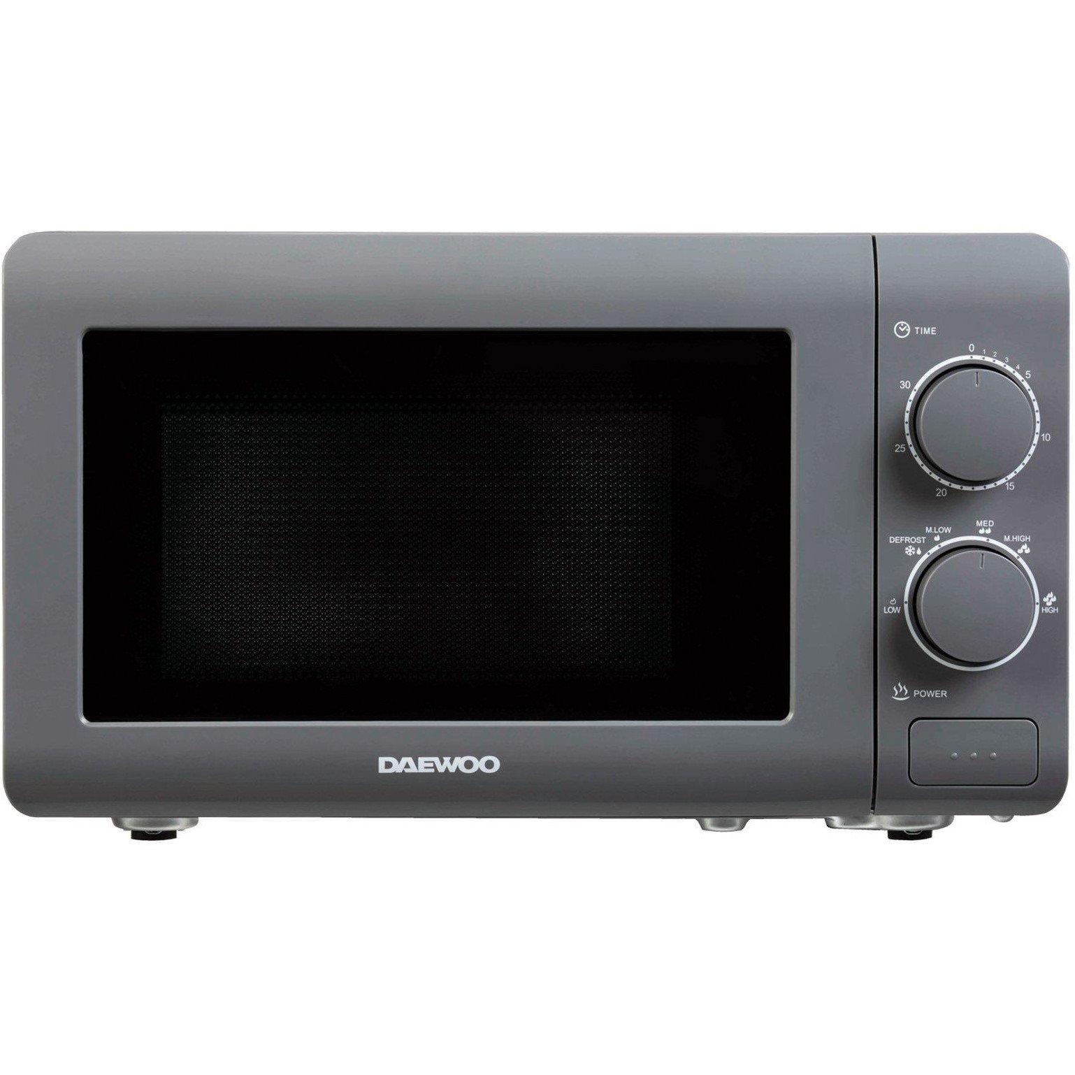 Powerful Performance Upgrade your kitchen with the Daewoo 20L Manual Microwave, featuring a sleek matte grey finish that complements any modern kitchen decor. With its powerful 800W output, this microwave delivers reliable performance for all your cooking and reheating needs. Versatile Cooking Options Equipped with 6 power settings, including a defrost function, this microwave ensures you have the flexibility to prepare a wide range of meals, from quickly reheating leftovers to gently defrosting frozen foods. The adjustable 30-minute timer allows precise control over your cooking, making it easy to achieve perfect results every time. Spacious and Easy to Maintain With a generous 20L capacity, this microwave offers ample space for larger dishes and plates, accommodating a variety of food types and portions. The removable turntable is designed for easy cleaning, allowing you to maintain a spotless interior with minimal effort.