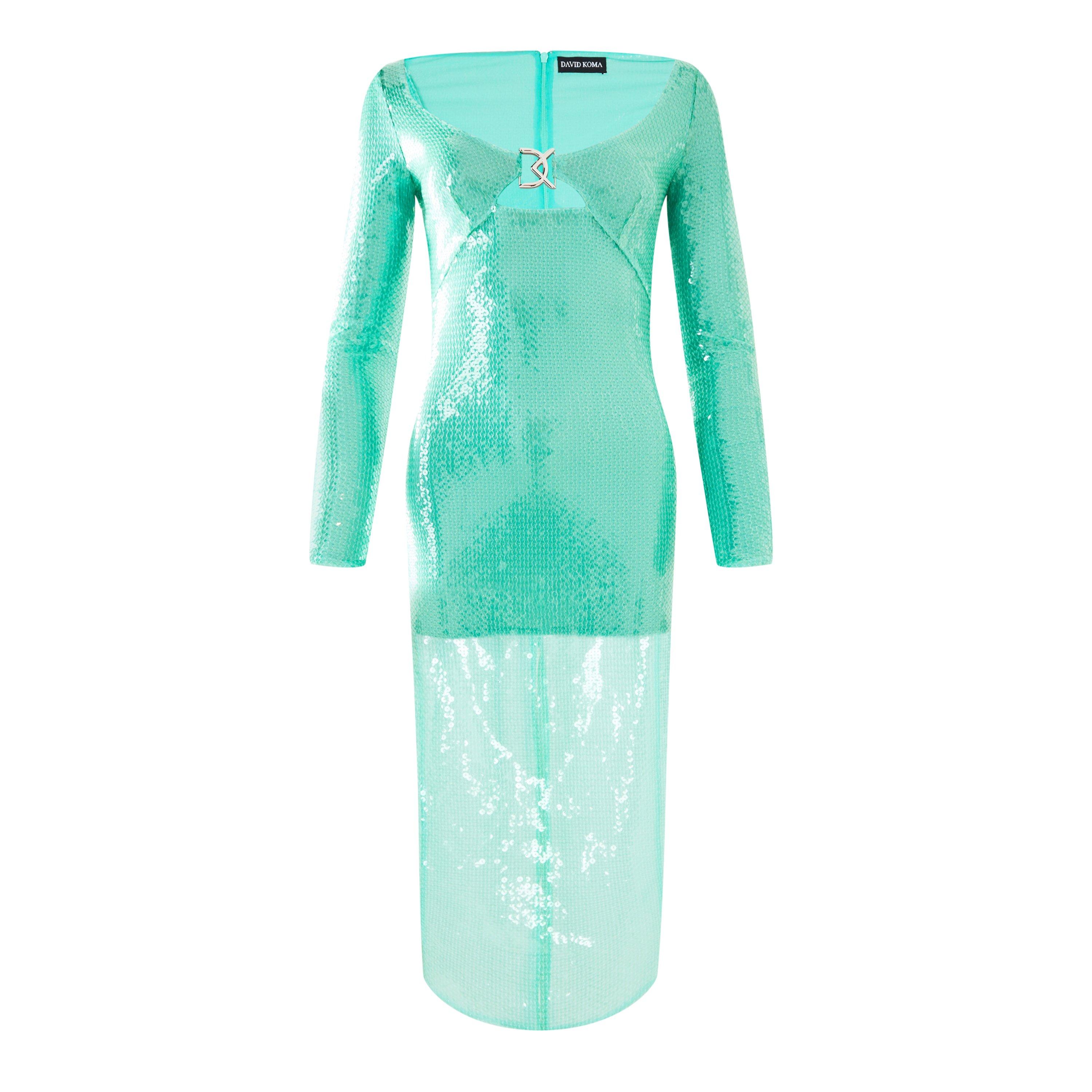 Head out in pure sophistication with the David Koma Logo Buckle Sequin Midi Dress. Presented from head to toe in glistening sequins, the midi dress features a feminine low neckline with a key-hole cut out detailing held together with branded hardware.