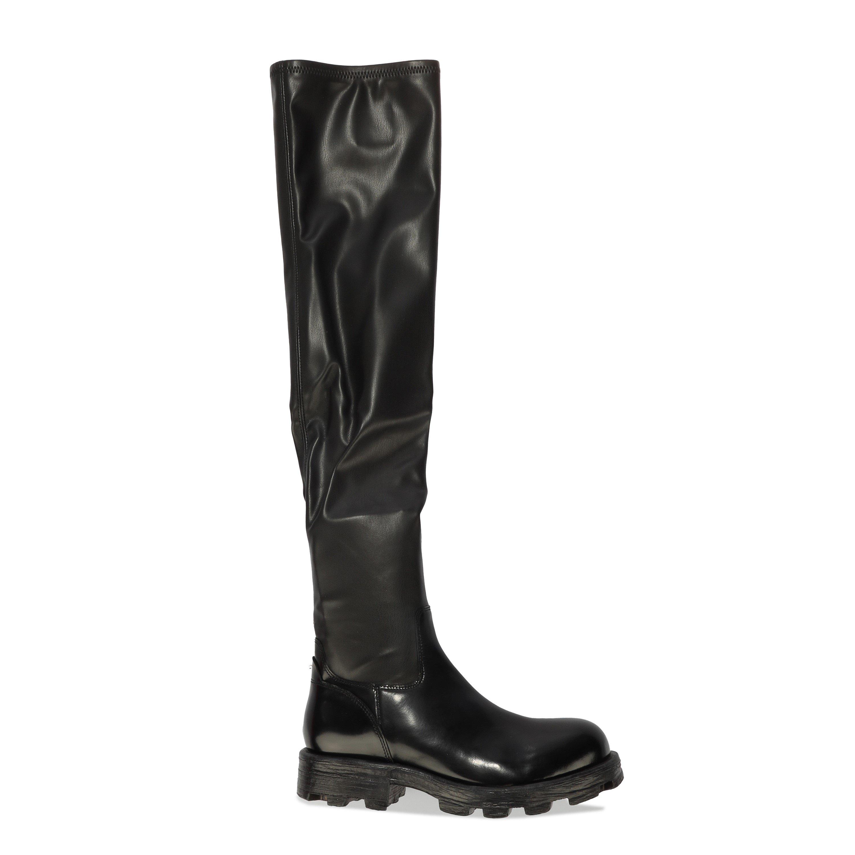 The Diesel D-Hamr Over the Knee Boots are built with a tall shaft that extends above the knee. The streamlined profile maintains a clean, contemporary look.