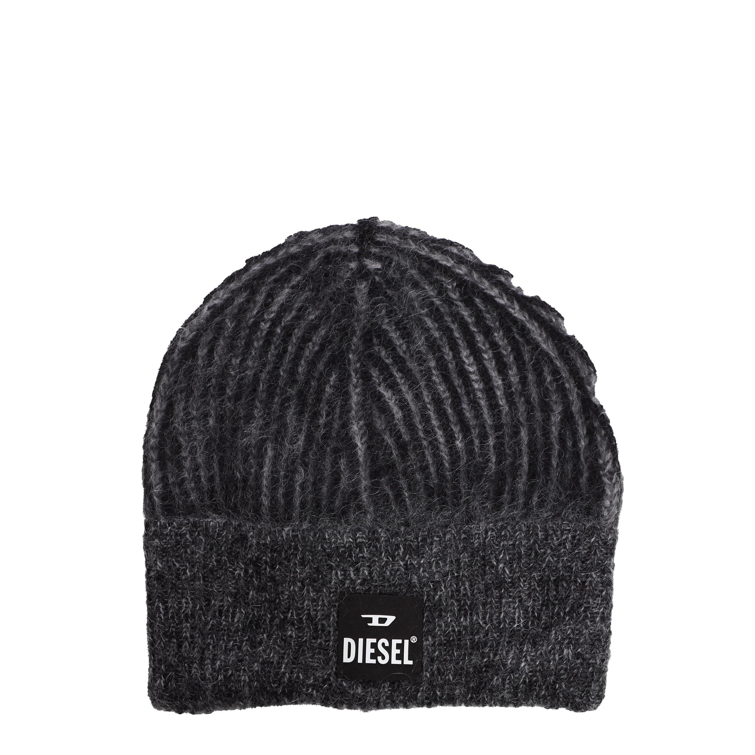 Ribbed knit design with a turn-up cuff. Diesel For Successful Living logo patch on the front.