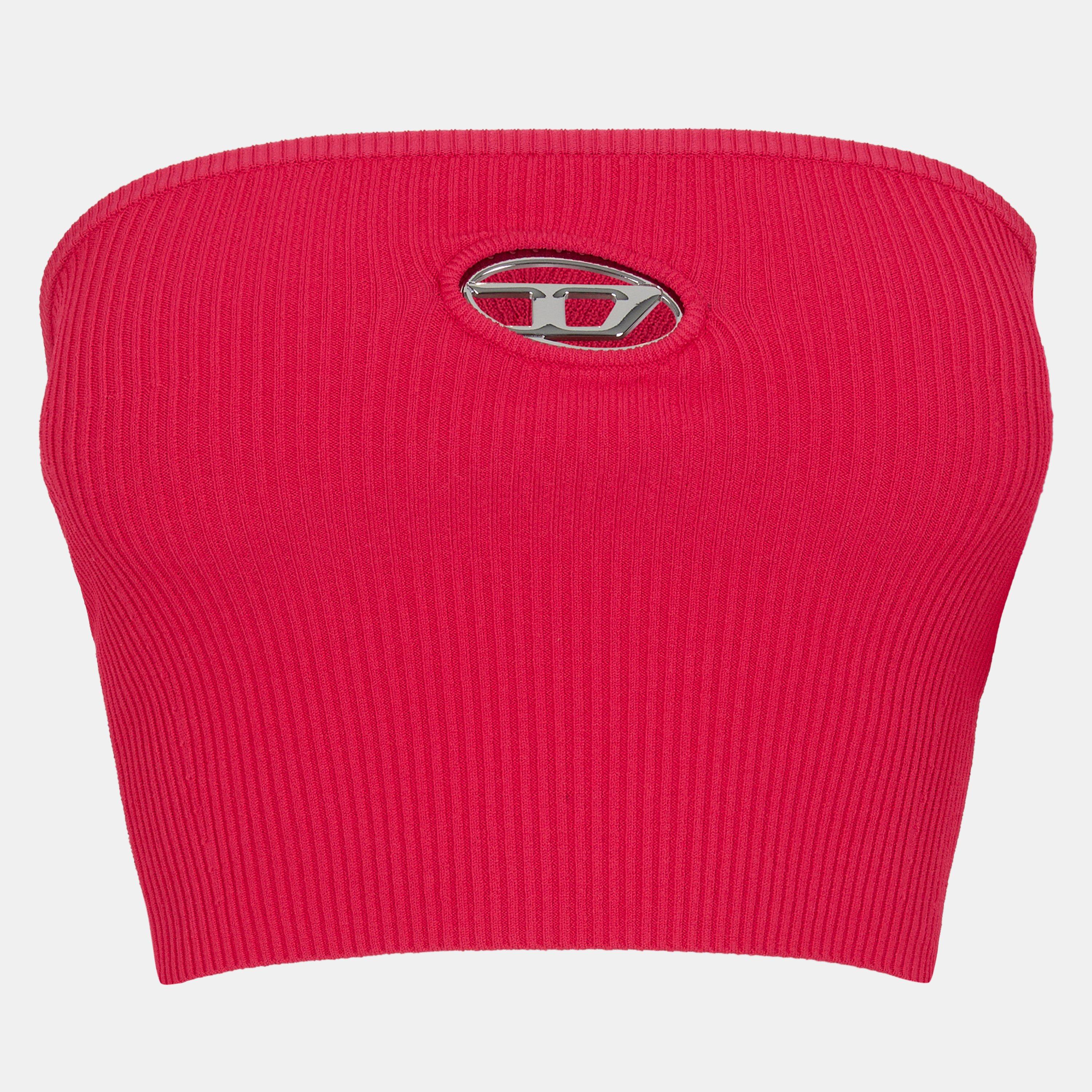Unleash your inner style with Diesel's De-Slimmy M-Clarksville Bandeau, a brand renowned for its rebellious and unconventional luxury. Embellished with the signature logo plaque cut out at the chest, exuding a bold designer stamp. From cocktail parties to chic soirées, this top boasts luxury and style.