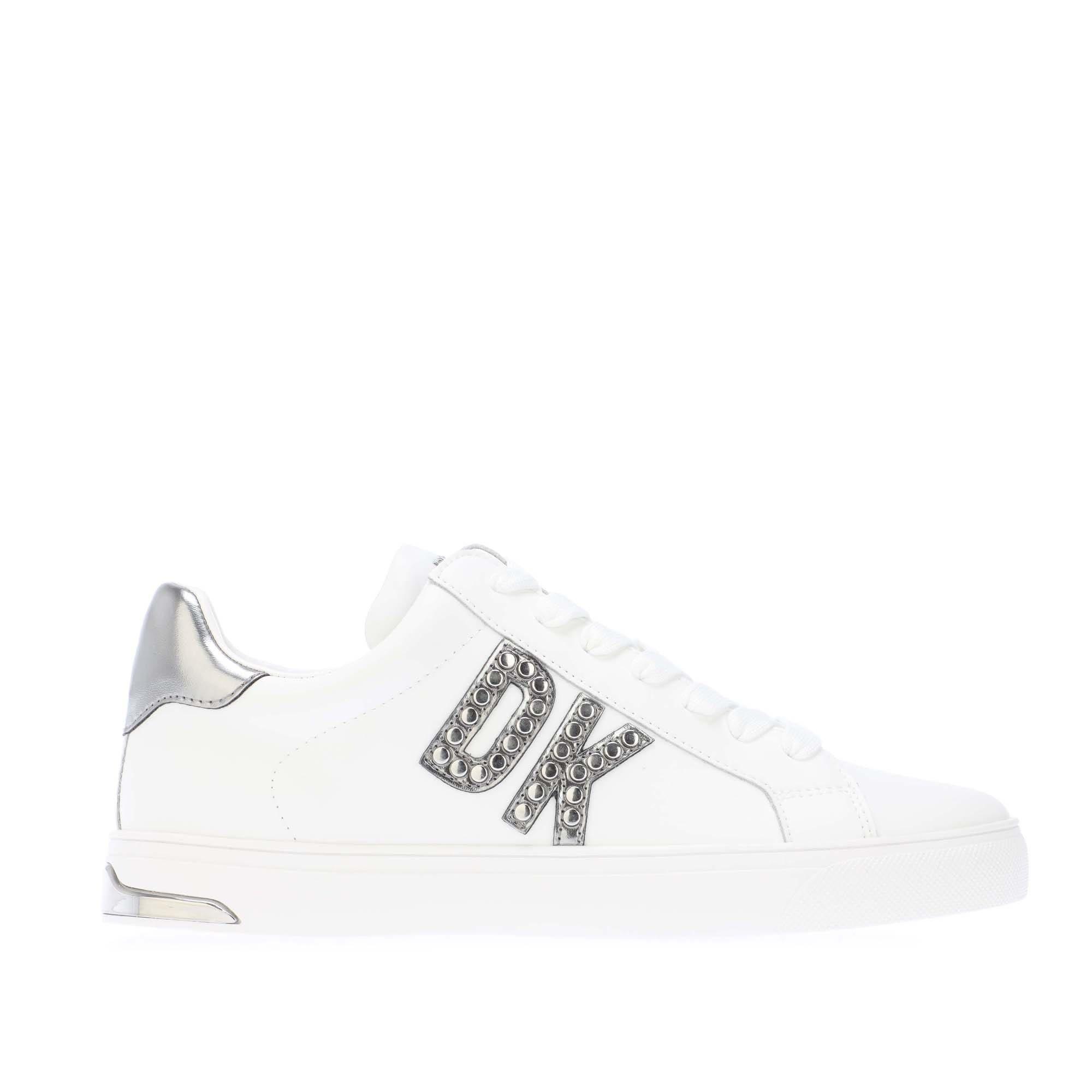 Leather upper. Lace up fastening. Low-top. DKNY logo on the side with studs. Metallic silver detail on the heel. Metallic heel tab. Rubber sole.