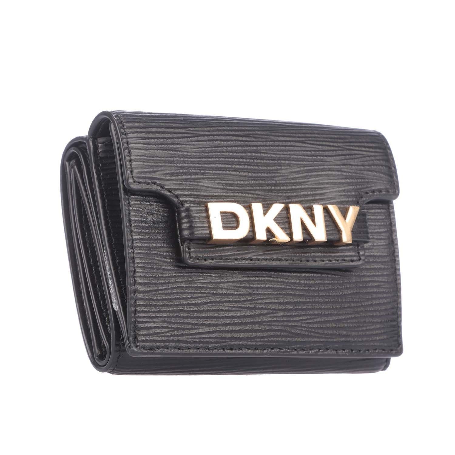 Card slots slip compartment coin compartment. Press stud fastening. Gold-tone DKNY logo on the front. Faux leather fabric.