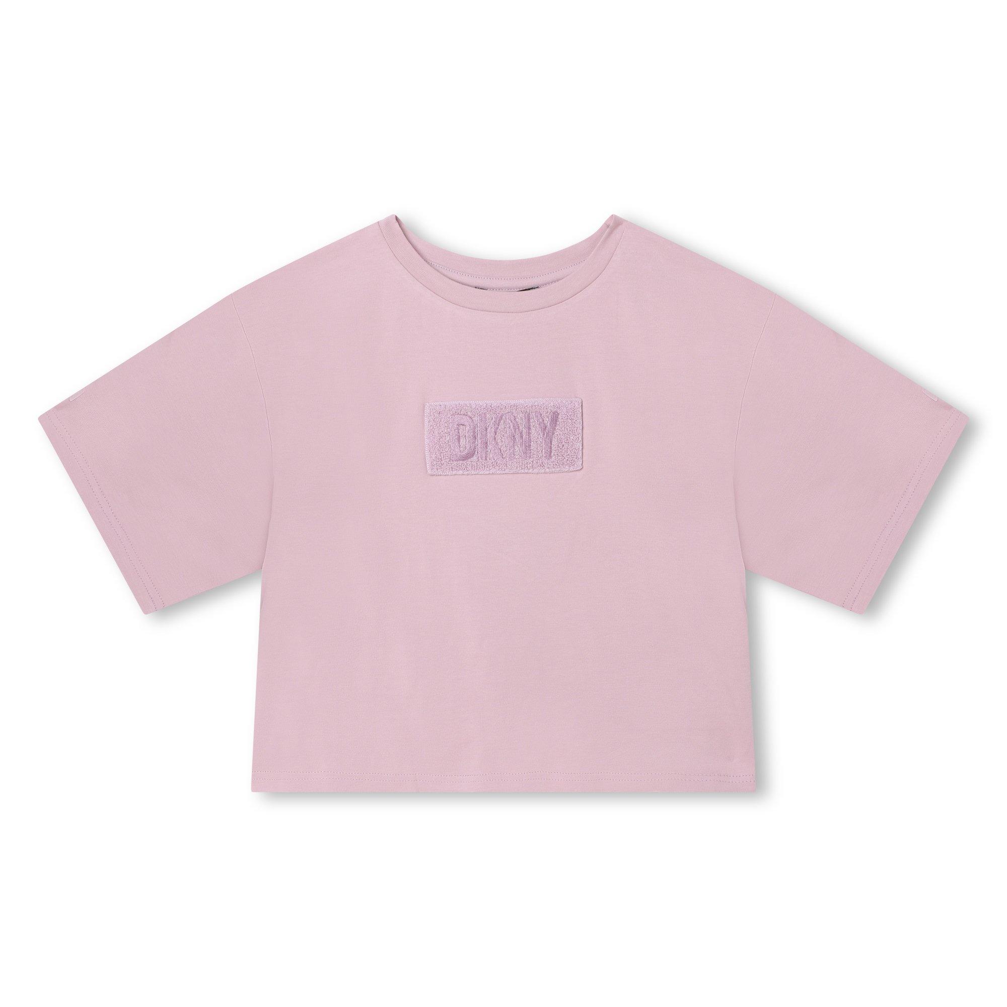 The DKNY Kids' Box Logo Regular Fit T-Shirt delivers urban style in a comfortable cut. Designed with the brand's box logo, this classic youth apparel offers a relaxed fit ideal for everyday wear.