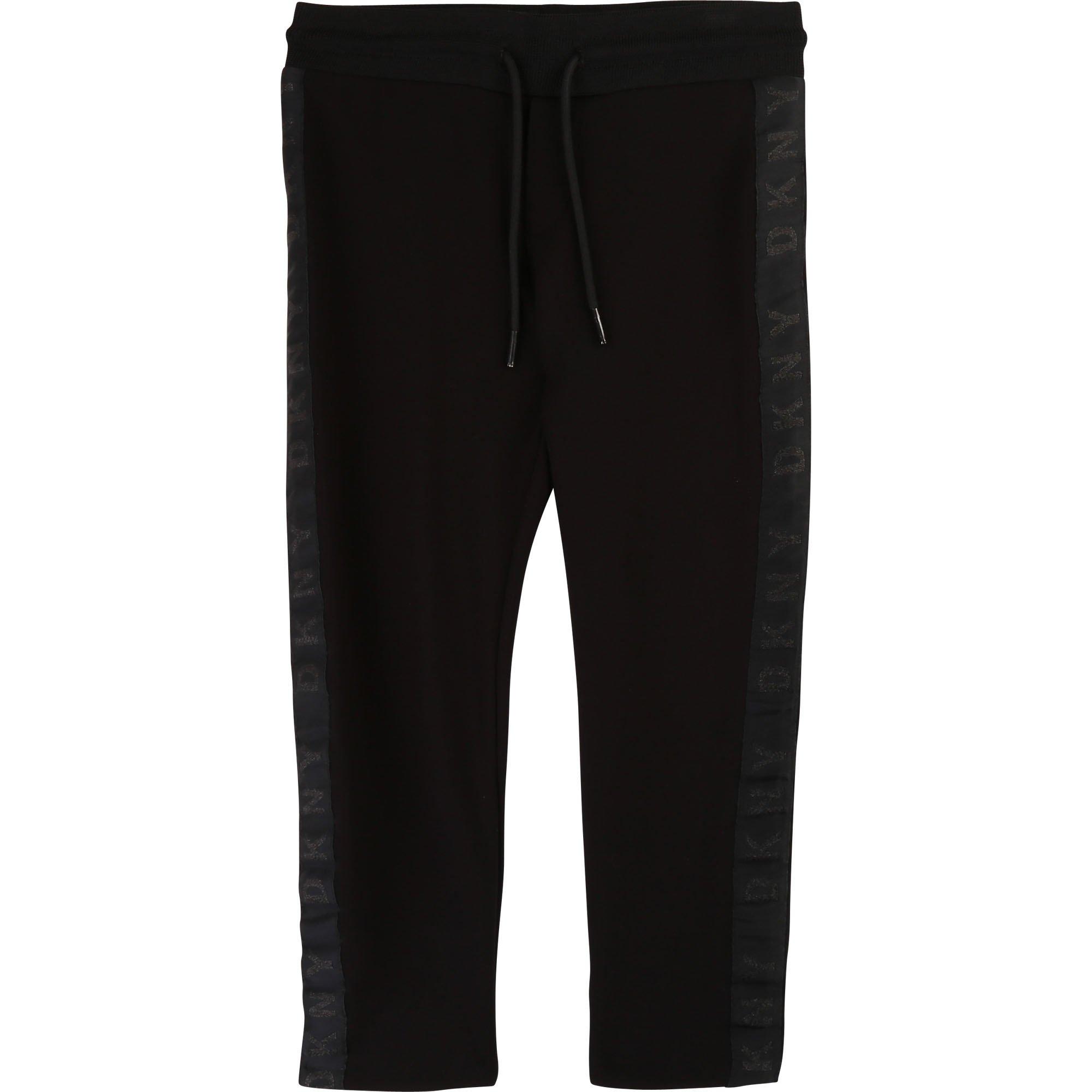 These DKNY girls' jeggings in stretch milano knit fit perfectly within the trend for side stripes. The garment is made of satin embellished with a jacquard logo. The elasticated waistband can be adjusted with a drawstring that ties at the front.
