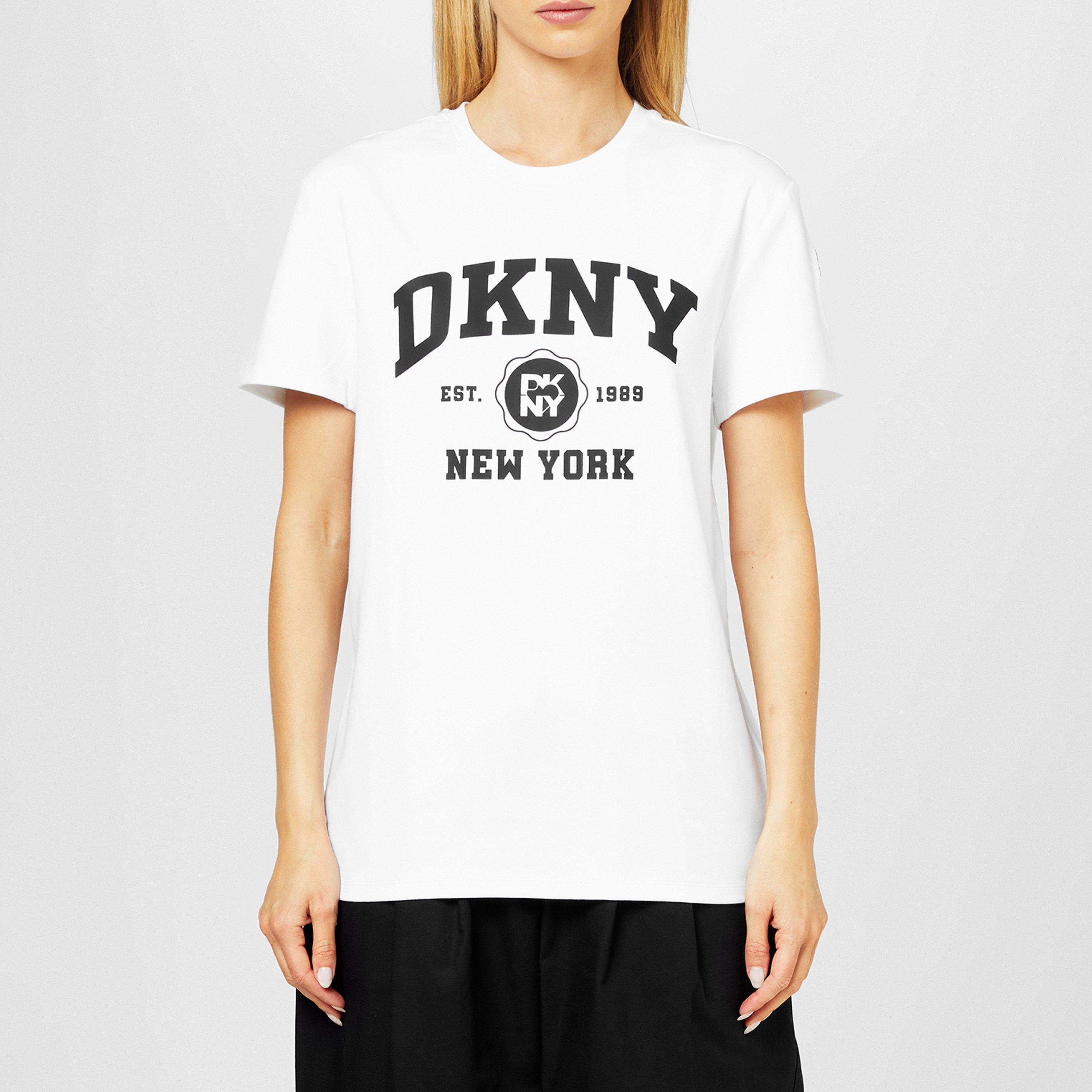 DKNY's Varsity Baby Tee delivers nostalgic collegiate style with modern proportions. The cropped cut features a slim fit and classic ribbed neckline.
