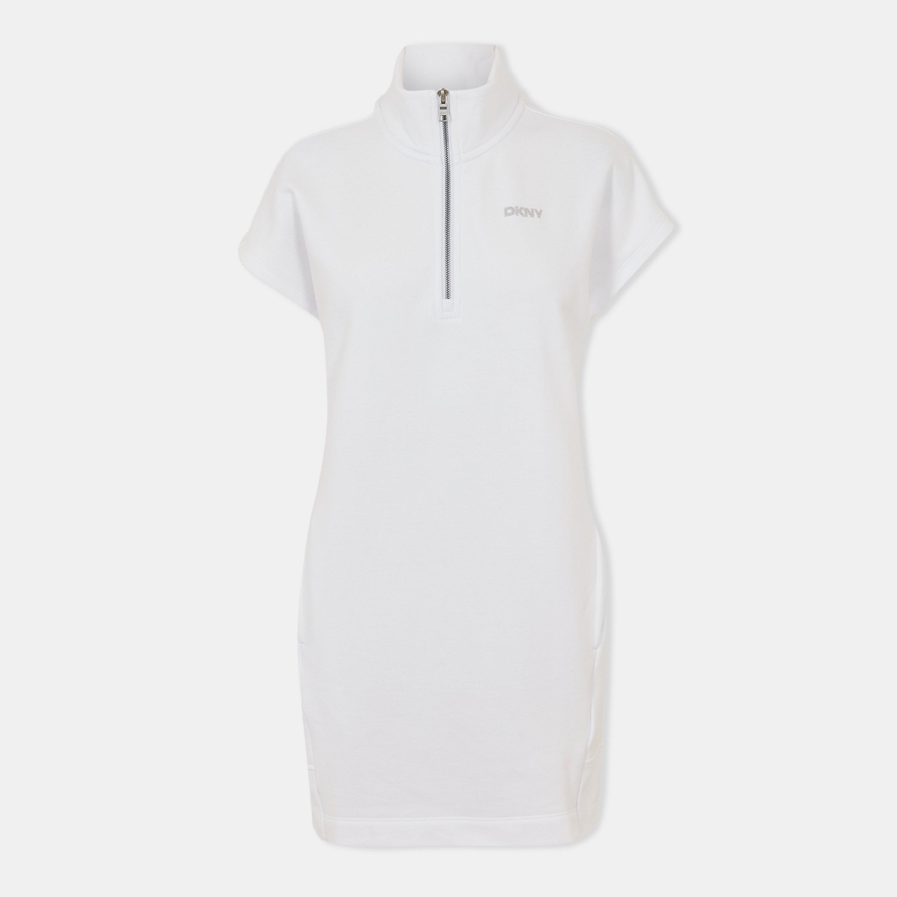 DKNY's Half-Zip Knit Slim Fit Jumper Dress unites style with practical design. The sleek shape features a front zipper that creates visual interest while allowing for multiple neckline styles, all made from comfortable knit fabric that maintains its structured shape.
