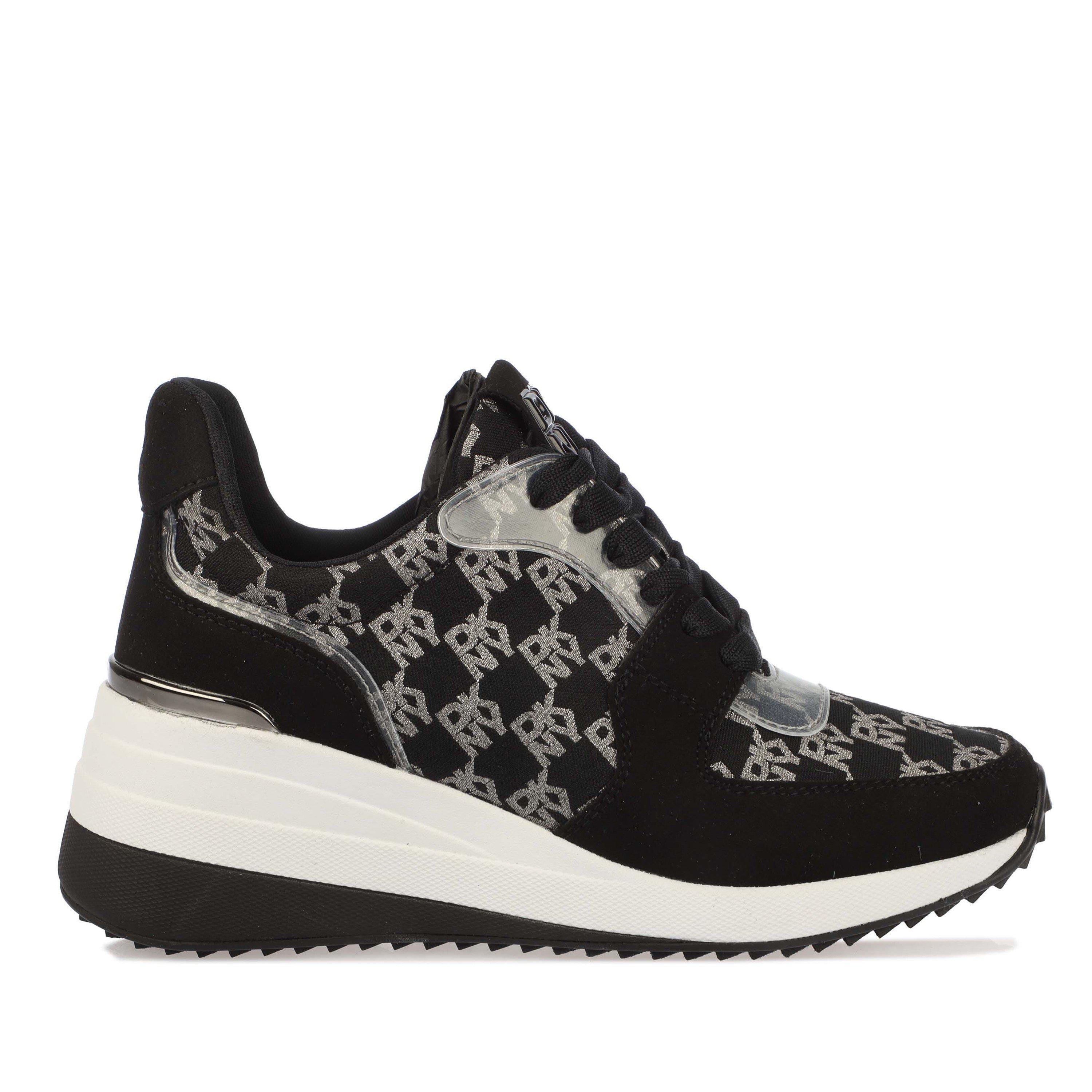 Womens DKNY Kamay Wedge Trainers in black silver.