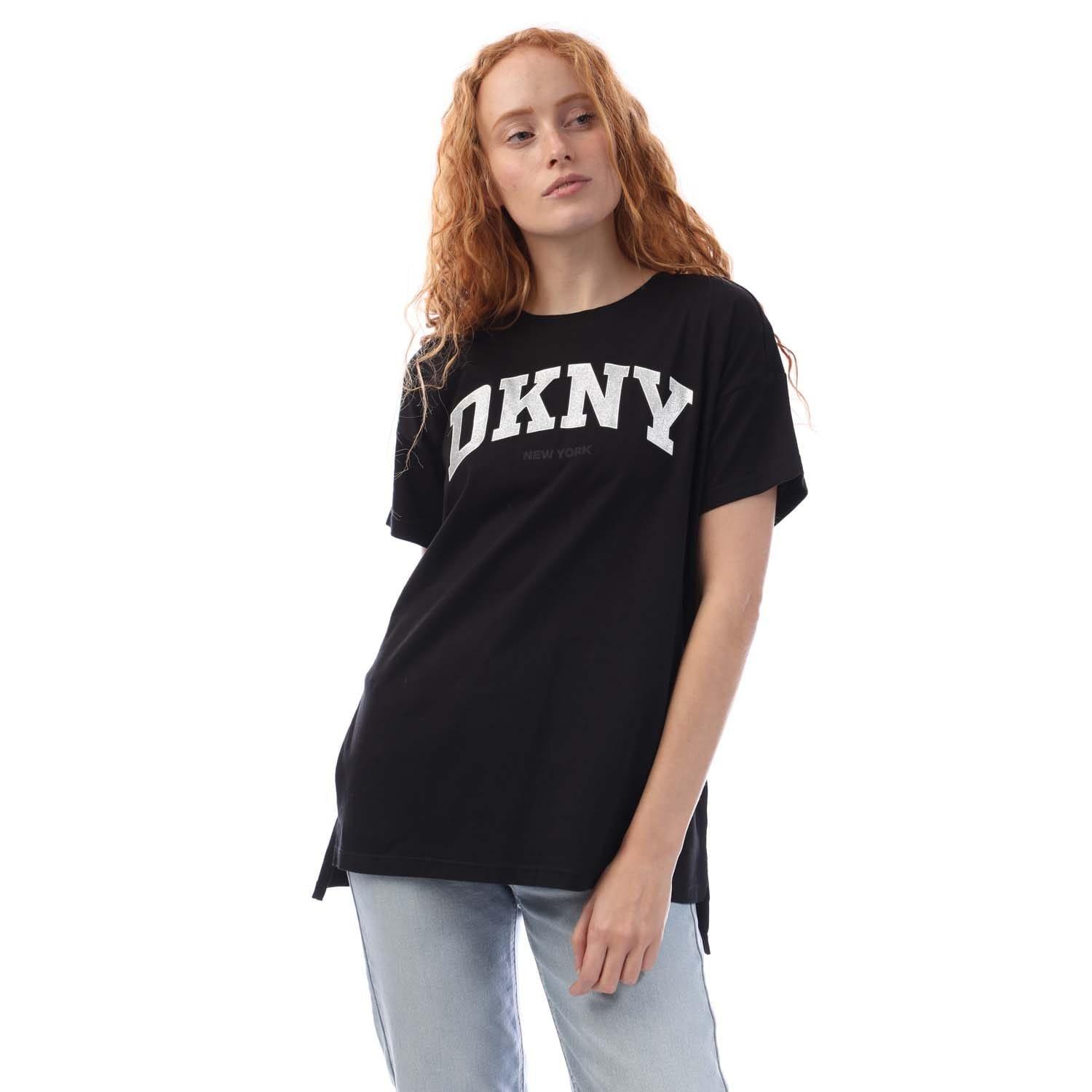 Womens DKNY Logo Short Sleeve T- Shirt in black silver.