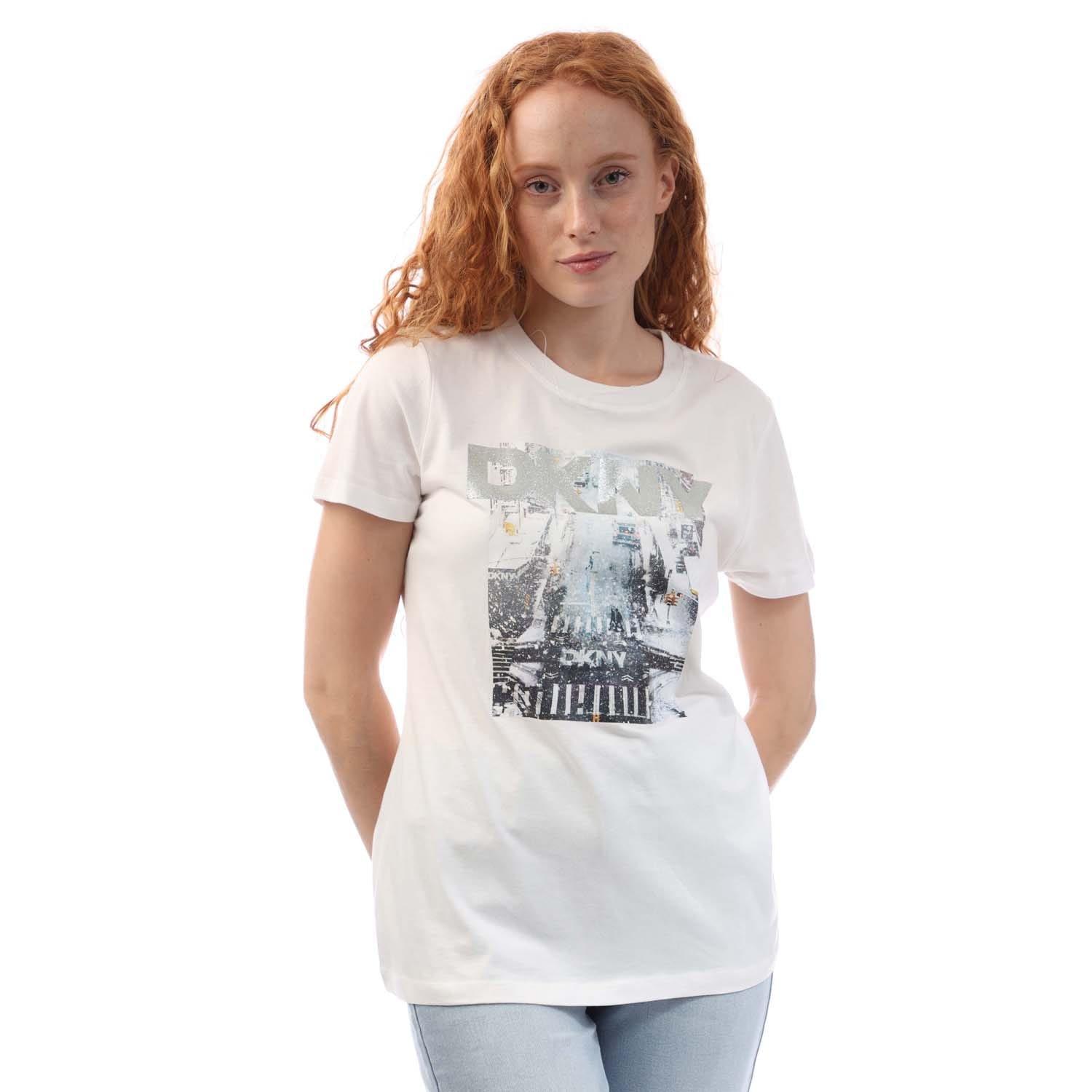 Womens DKNY New York Snow T- Shirts in purple white.