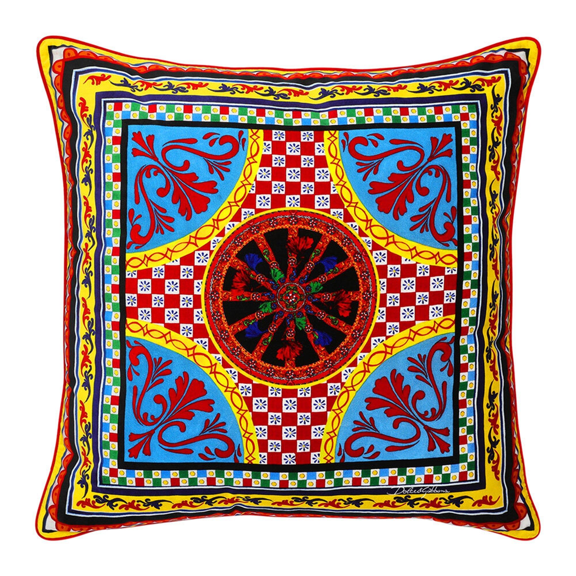 This large velvet cushion, with a striking foulard print from the archives, echoes the Carretto Siciliano - a folkloric element from a place of traditions, artistic craftsmanship, landscapes and unique colours that have always been at the heart of Dolce&Gabbana’s aesthetics. Characterized by the generous filling, this cushion is soft to the touch and trimmed with thick matching piping, a detail which is evocative of the elegance of Dolce&Gabbana loungewear.