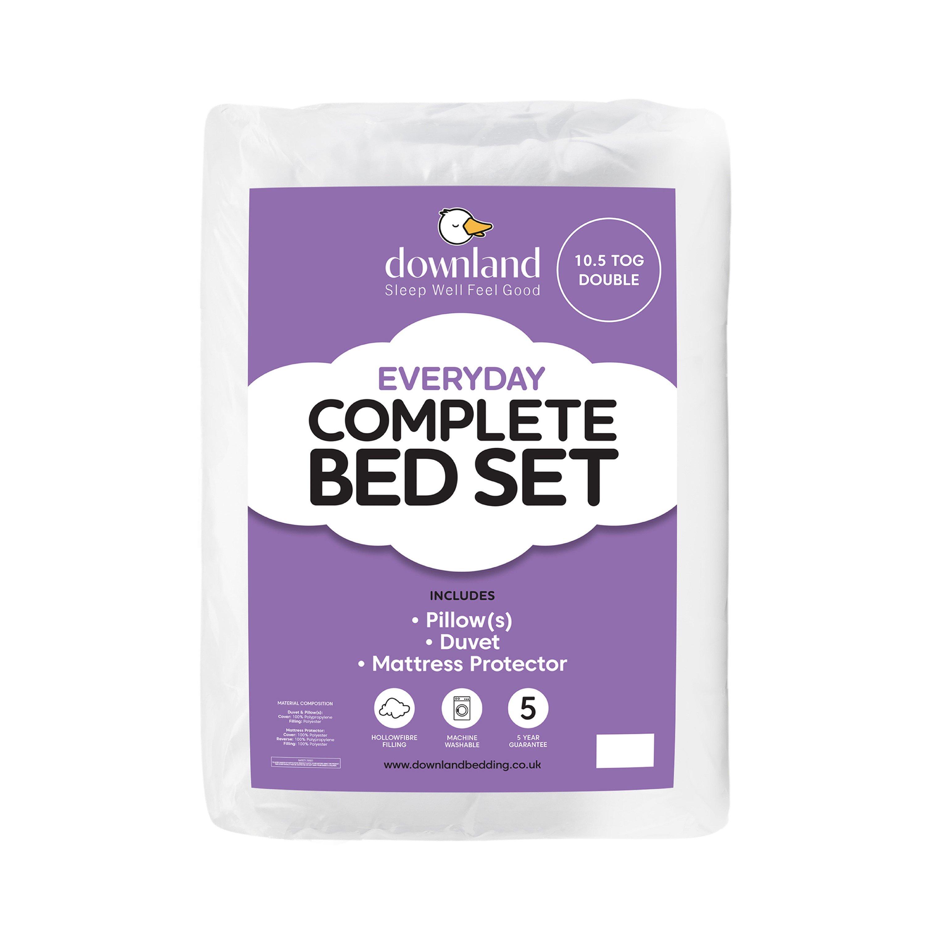 Downland Everyday Complete Bedset – 10.5 Tog Duvet, Pillow(s) & Mattress Protector Upgrade your sleep in one easy step with the Downland Everyday Complete Bedset. This all-in-one bedding bundle includes everything you need for a cosy, comfortable night’s rest – a soft and breathable 10.5 tog duvet, supportive pillow(s), and a mattress protector for added comfort and hygiene.
