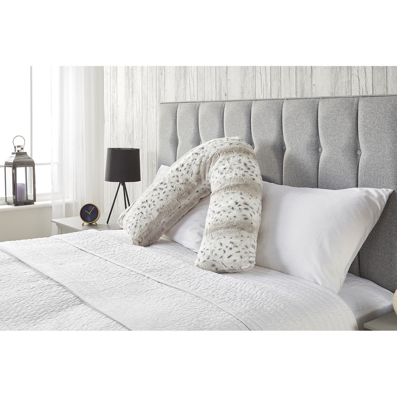 The ultimate in luxury, the Huggleland snow leopard V shaped pillow is generously filled to give you support whether you are sitting up or lying down.