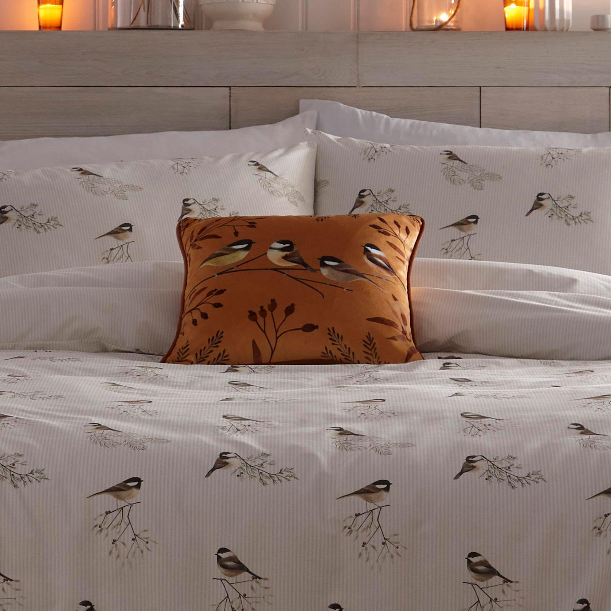 A pair of beautifully drawn Chickadee birds perch on the face of this gorgeous, soft touch, piped velvet cushion that will look sensational in any room of your house.