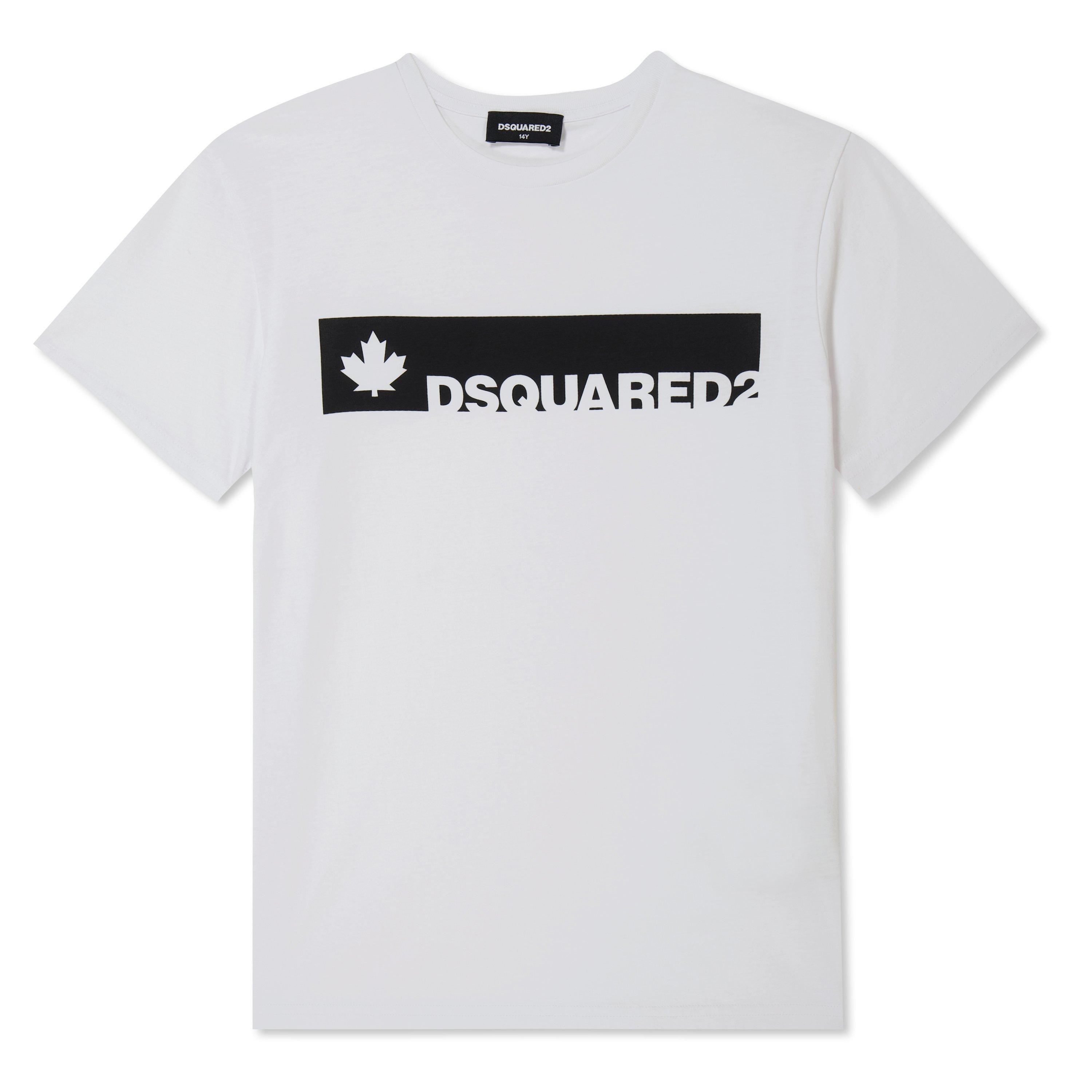 Add the Maple Leaf Short Sleeve T Shirt from Dsquared2 into your child's casual collection. Constructed with a soft cotton composition, this t shirt is cut in a regular fit and features short sleeves, a ribbed crew neckline and elasticated trims for a comfortable wear. Designed in a solid colour way, the look is finished with the brand's logo printed to the chest for brand recognition. Machine washable at 30 degrees.