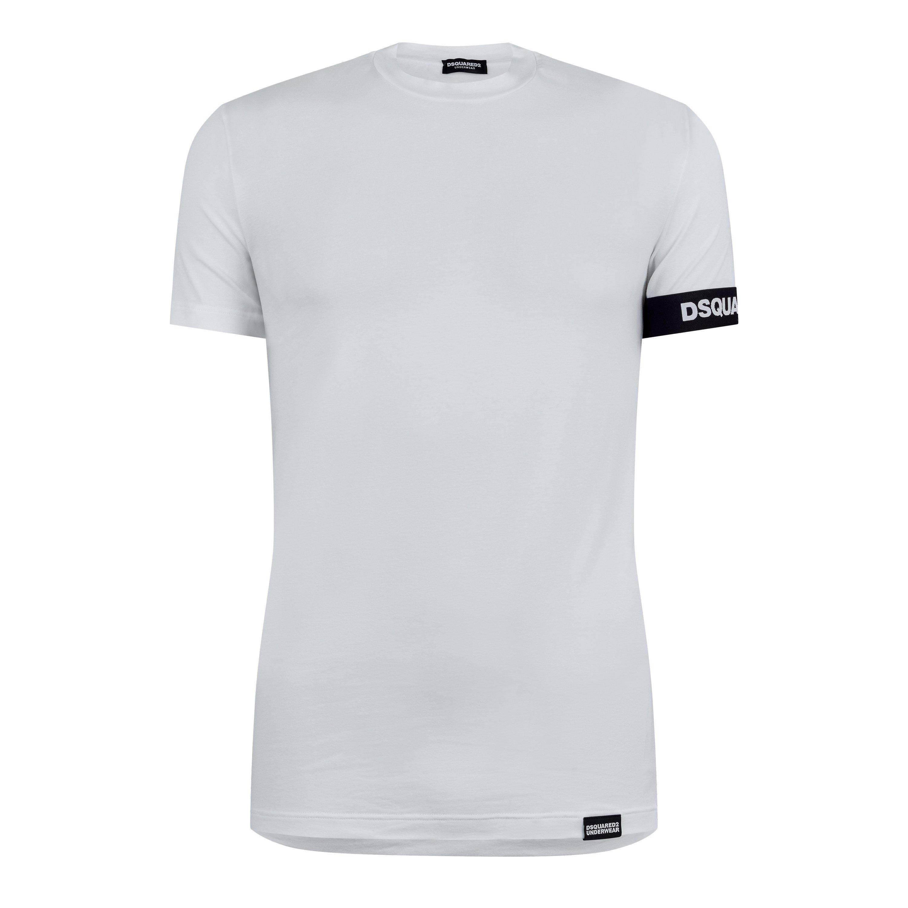 Revitalise your wardrobe staples with this Logo T-Shirt, brought to you by Dsquared2 Underwear. Expertly crafted in premium stretch cotton, this essential piece features a crew neck, short sleeves, tonal stitching and a straight hem. Solid block colouring allows for easy styling, and bands around the left sleeve and hem proudly display the brand's instantly recognisable motifs for a high-end finish. Fabric composition - 95% cotton, 5% elastane. Machine wash - always refer to and follow garment labelling for care instructions and best wear.