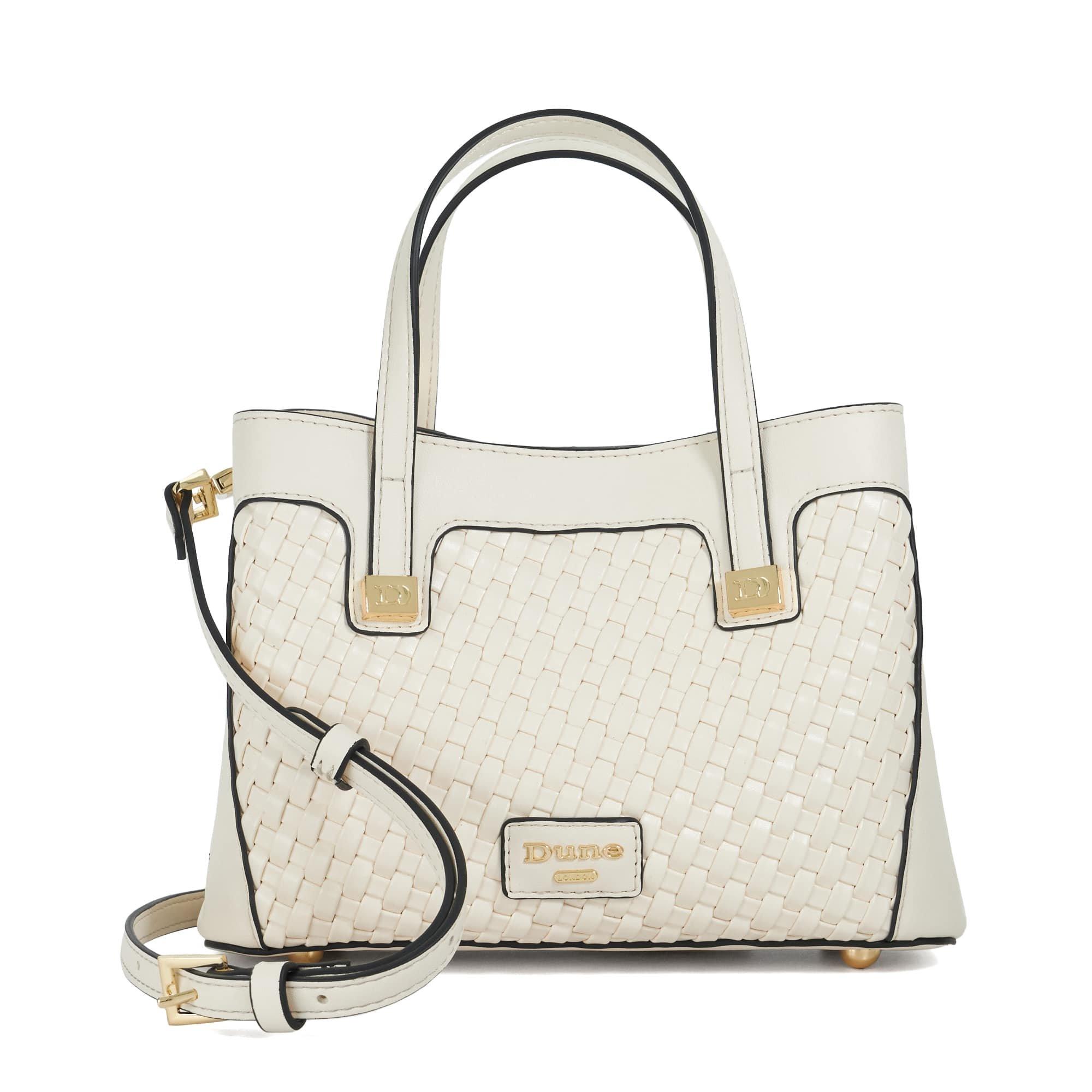 Dune London's Deavie Top Handle Handbag has a structured form with practical design elements. This designer handbag features a clean shape with branded hardware detailing and an adaptable carrying option for smooth day-to-evening transitions in modern style.