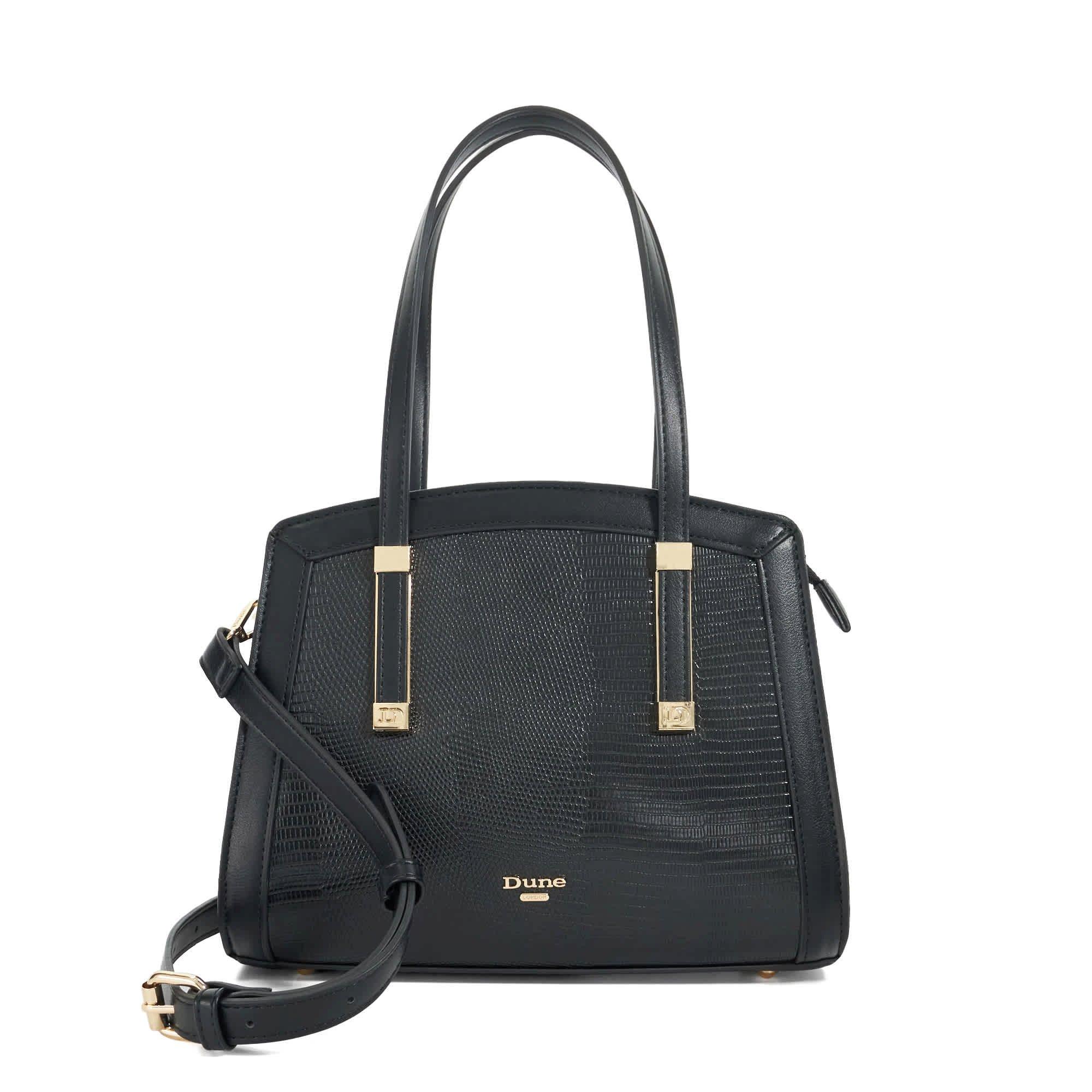 Dune London's Dorris Tote presents structured lines and spacious proportions for everyday carry. This large designer carryall features a clean shape that accommodates daily essentials for work and travel, while structured shoulder handles and details reflect the brand's characteristic detailing. A purse that offers both style and functionality.