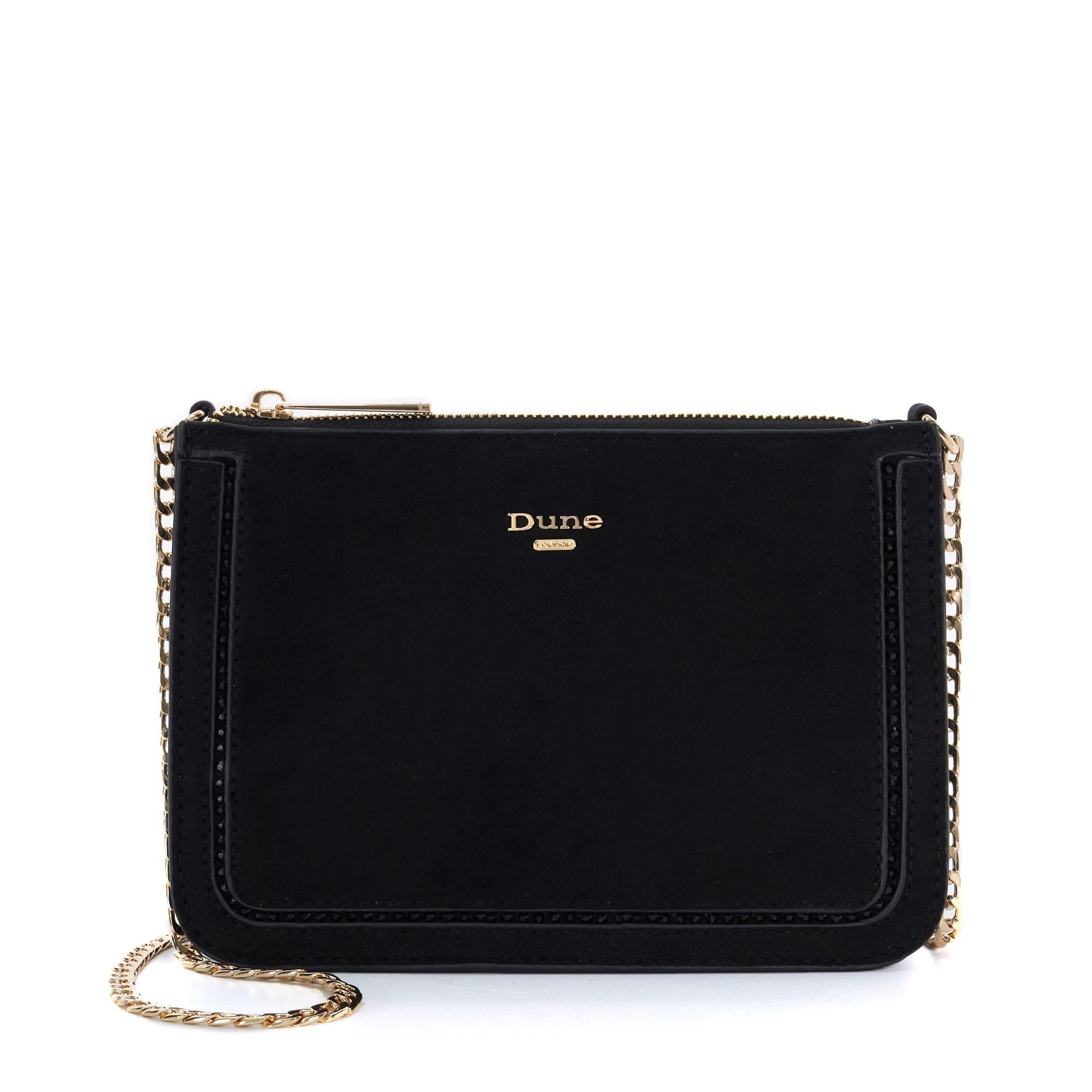 Understated and chic update your evening line-up with our Emilyo clutch. From the signature gold branding to the handy zip-top fastening there's nothing not to love about this must-have minimal design. Prefer to use it as a cross body bag? Simply style it with the elegant gold chain strap. Dimensions (W x L x D): 22 cm x 15 cm x 5 cm