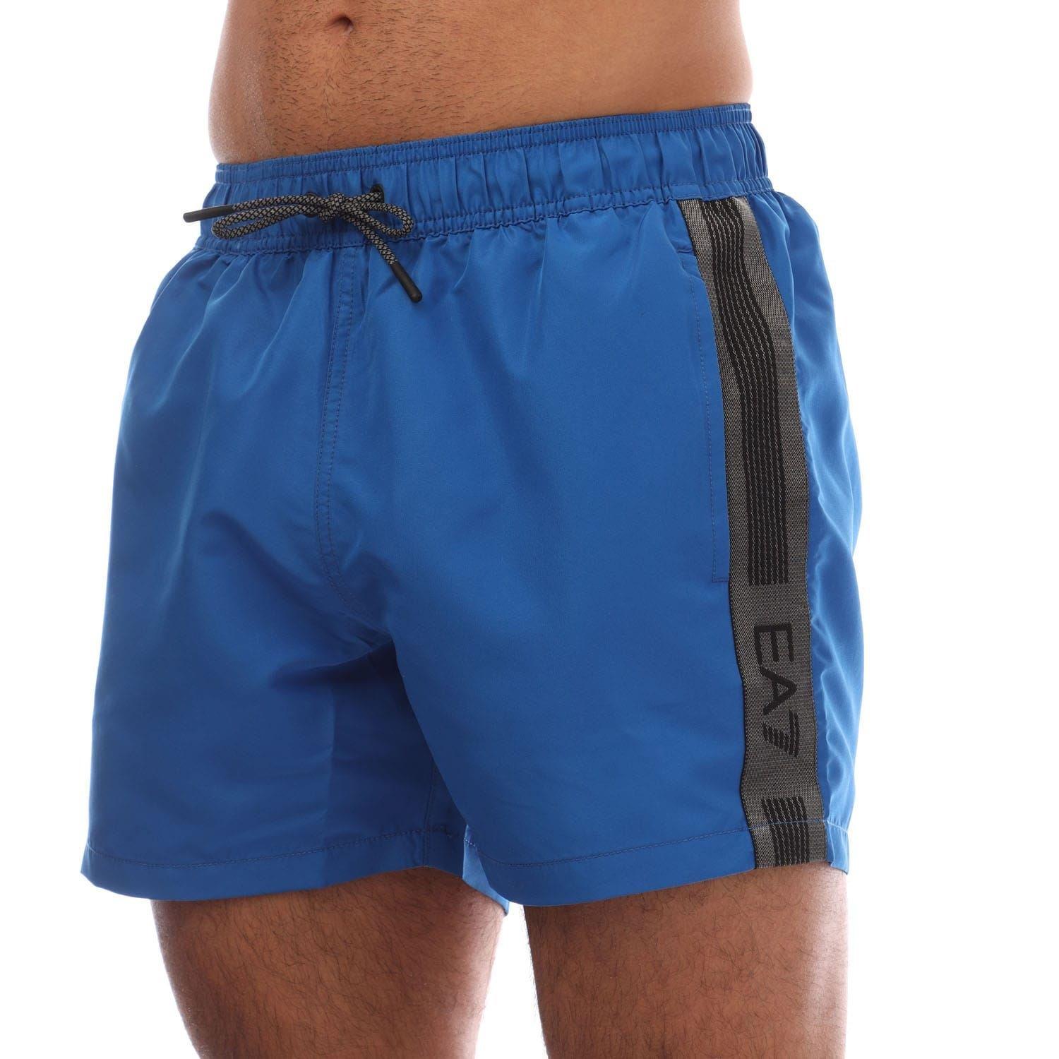 Mens Emporio Armani EA7 Logo Tape Swim Shorts in blue.