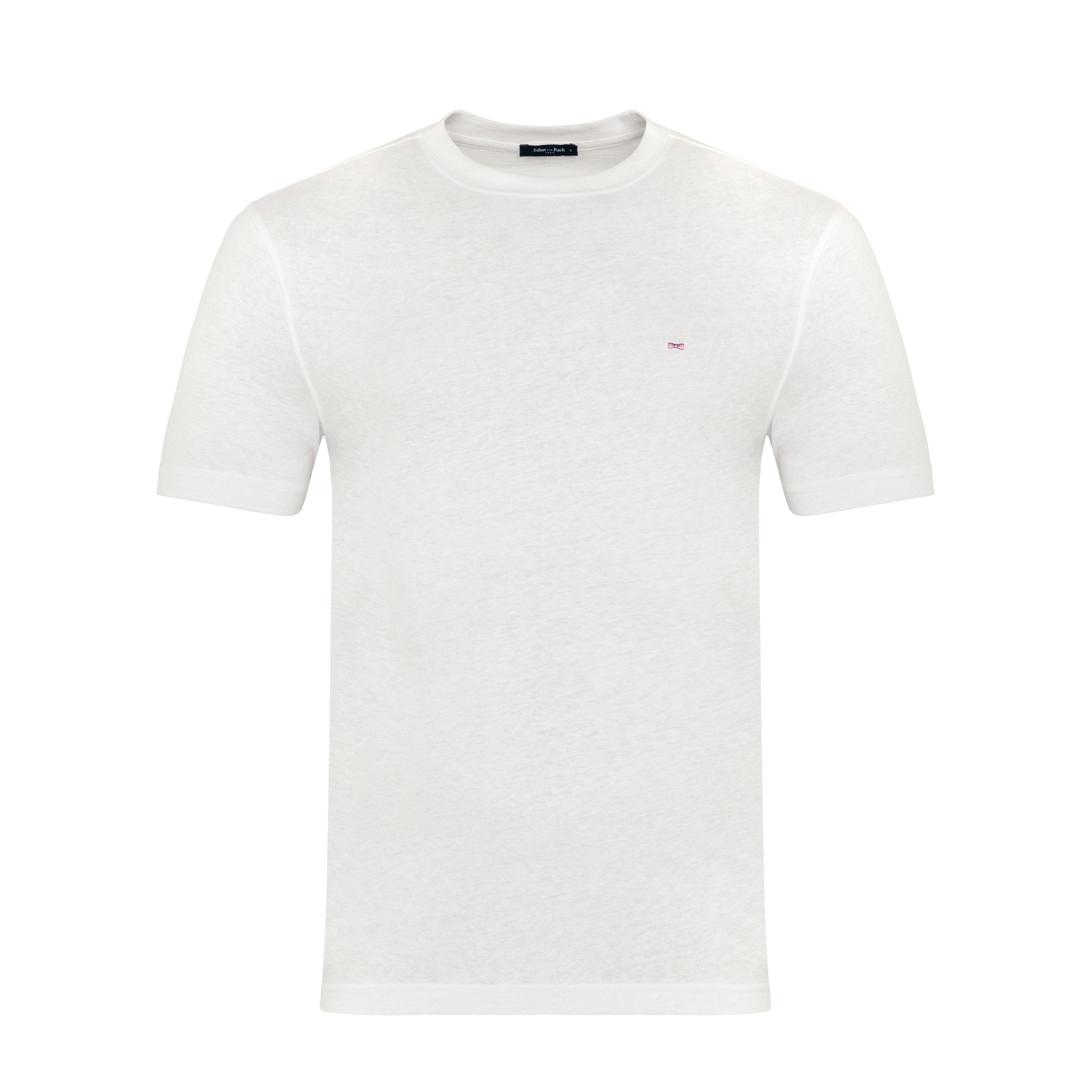 Crafted in cotton and linen, this plain, short-sleeved T-shirt is lightweight and a pleasure to wear. It features our iconic bow tie logo embroidered on the chest..Cotton and linen.Regular fit.Round ribbed collar.Embroidered bow tie logo on the chest.Straight hem.