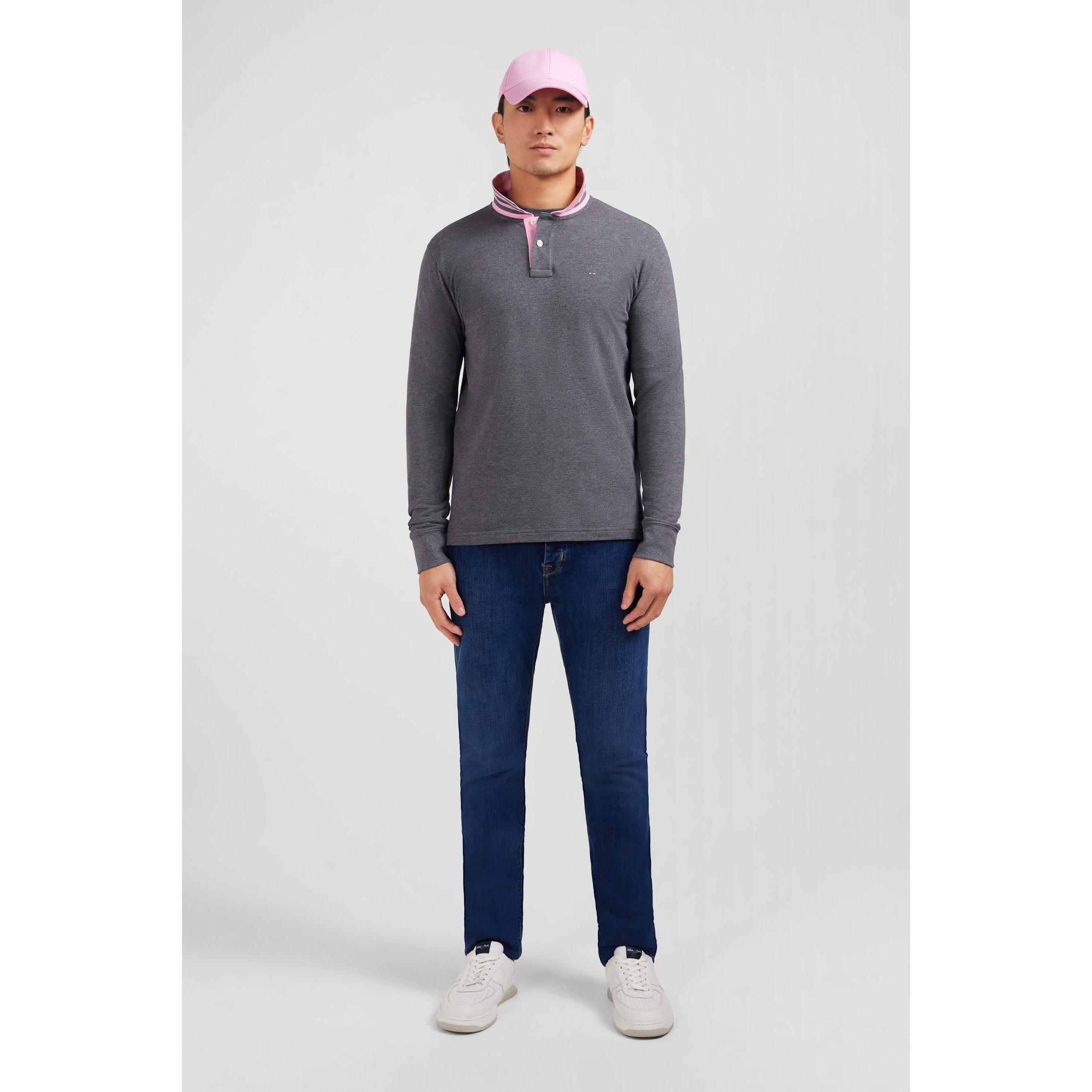 A new pillar of your winter wardrobe, this polo features contrasting finishes and solid cotton piqué crafting for an irresistible allure. A timeless piece, as elegant as it is comfortable, that you can count on from the midseason. Regular fit. Contrasting polo collar with striped underside. Contrasting ribbing at sleeve ends. Embroidered pink bow tie logo badge on chest.
