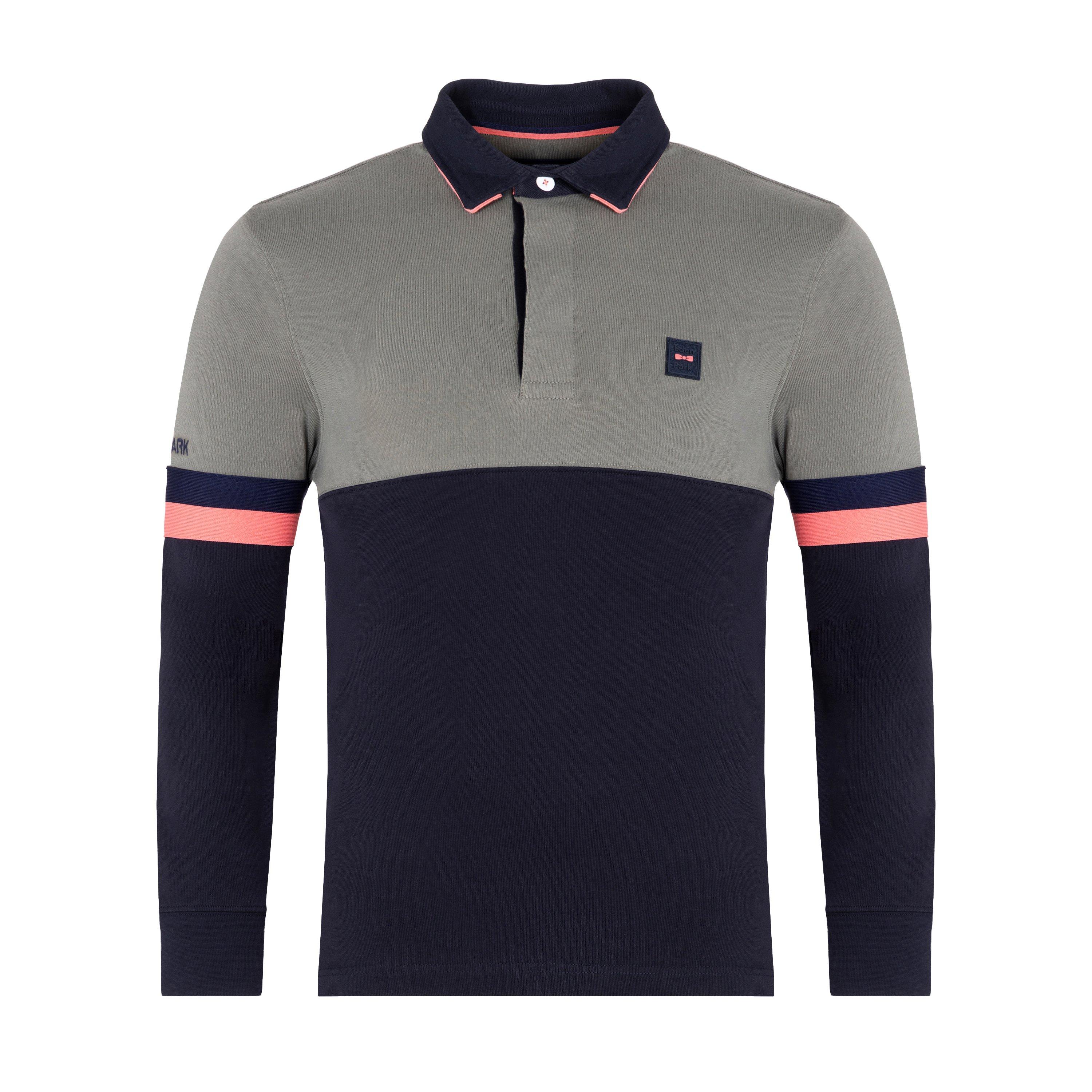 Crafted in brushed cotton jersey, this long-sleeved rugby shirt features a colour-block look. It is adorned with a cotton twill collar and a partially-open neckline with button fastening under a herringbone ribbon placket. There is also Eden Park embroidery on the right sleeve, as well as a square silicone Eden Park badge on the breast. Cotton. Silicone Eden Park logo badge on the breast and upper back. Eden Park embroidery on the right sleeve. Oval signature buttons. Comfort slits. Tightened, ribbed cuffs.