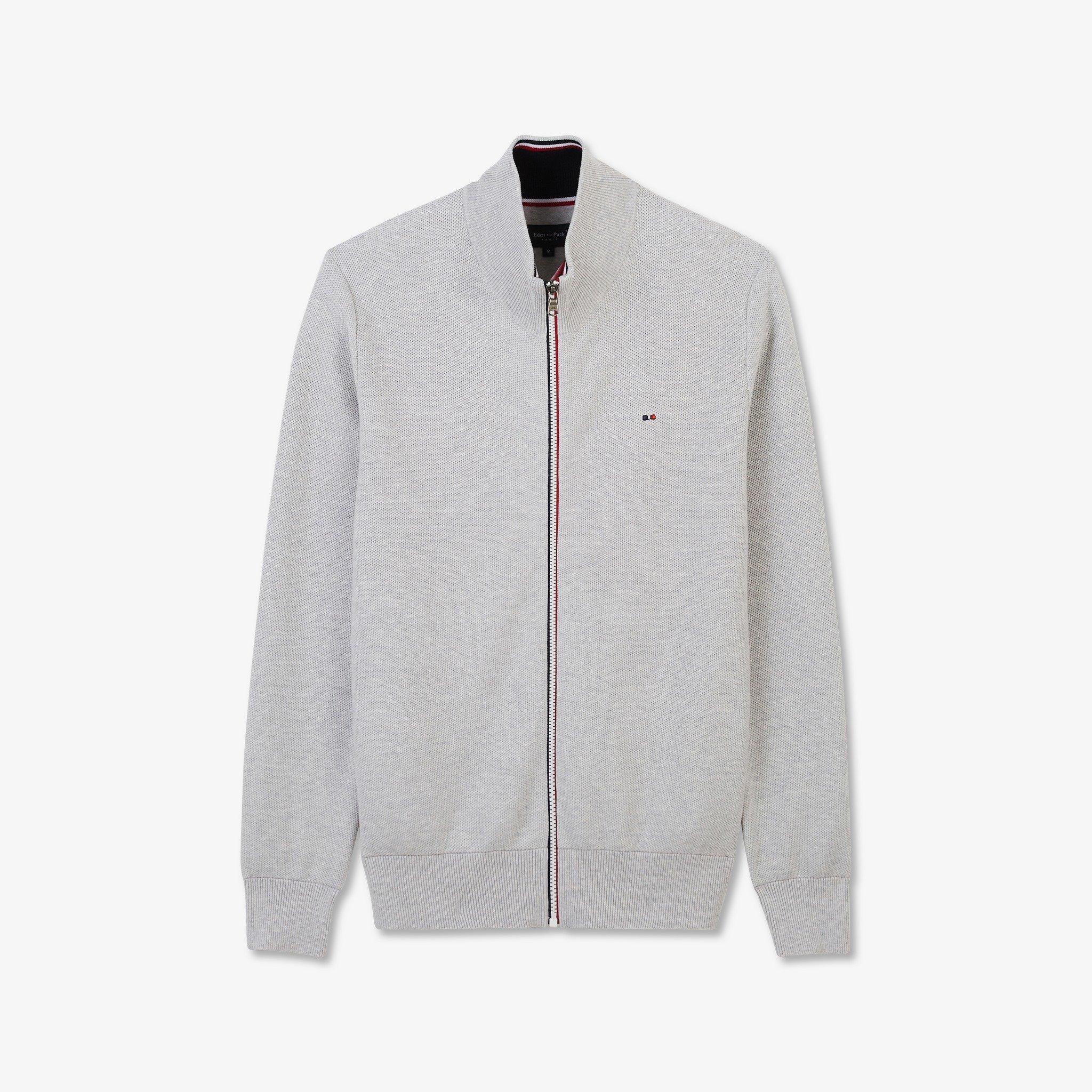This cardigan will spice up your outfits and offers you optimal comfort thanks to its pure cotton design. The tricolour trims are the perfect complement to the cardigan’s plain colour scheme. Cotton. Regular fit. Standup collar with contrasting tricolour underside. Tricolour zip closure. Tricolour bow tie logo embroidered on the breast. Tightened ribbed cuffs and hem.