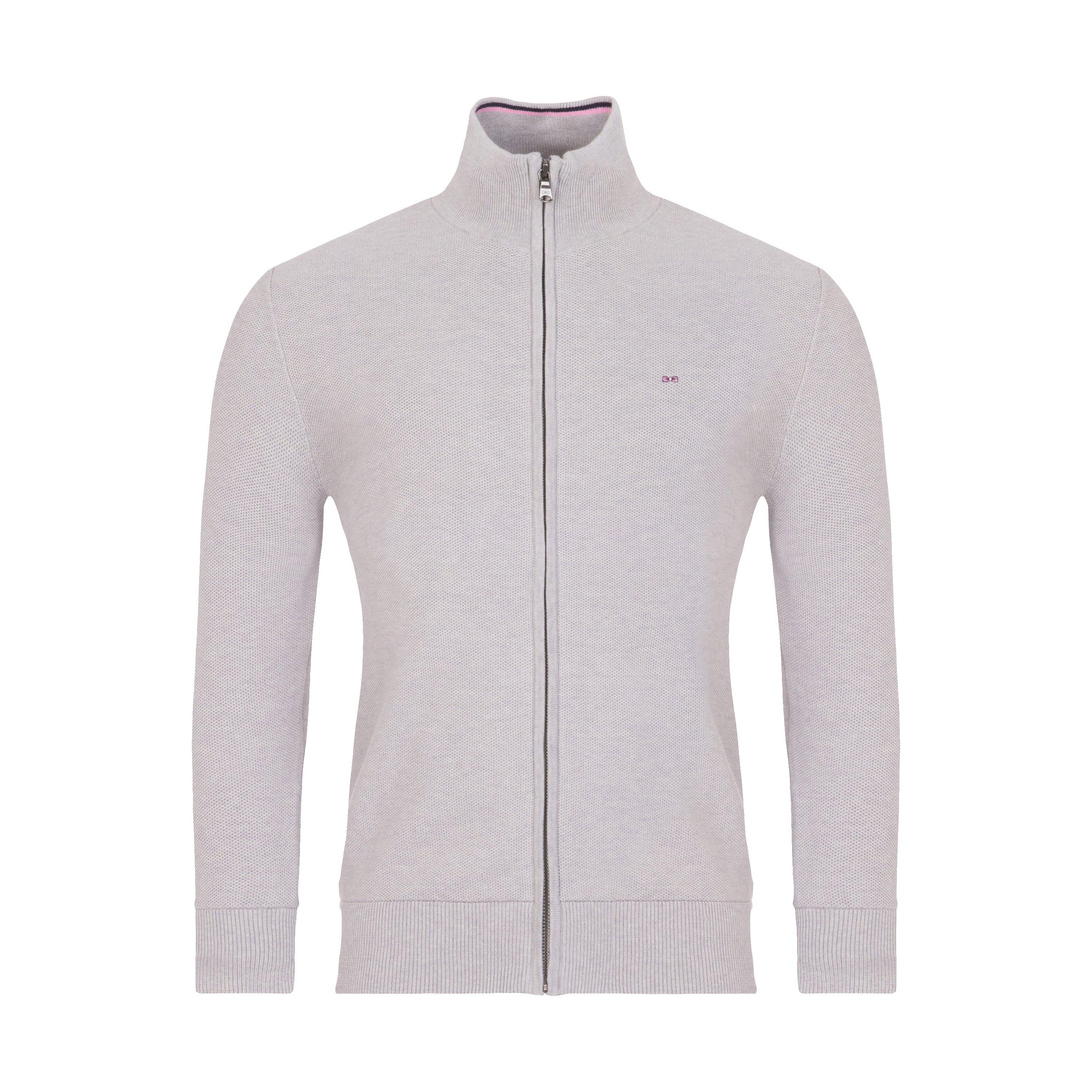 Crafted in a handsome seed stitch, this zipped cardigan features a standup collar and is accented by a small embroidered bow tie on the breast. Of particular note is the contrasting line on the underside of the collar. Cotton. Regular fit. Embroidered bow tie breast logo. Standup collar. Tightened ribbed cuffs and hem.