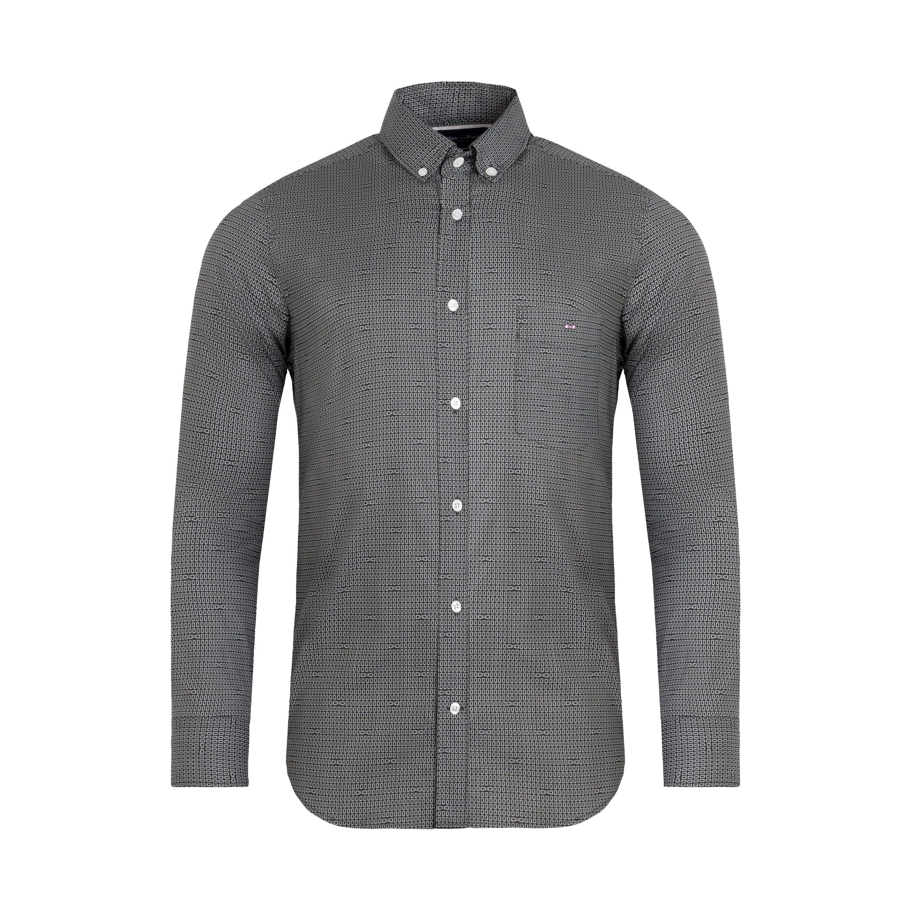 Light and stretchy, this shirt features a pretty exclusive print and a straight cut. It is subtly enhanced by the emblematic pink bow tie embroidered on the chest patch pocket. Stretch cotton. Regular Fit. Button down collar. Oval signature buttons. Embroidered bow tie logo on the pocket. Back comfort pleat. Rounded hem.