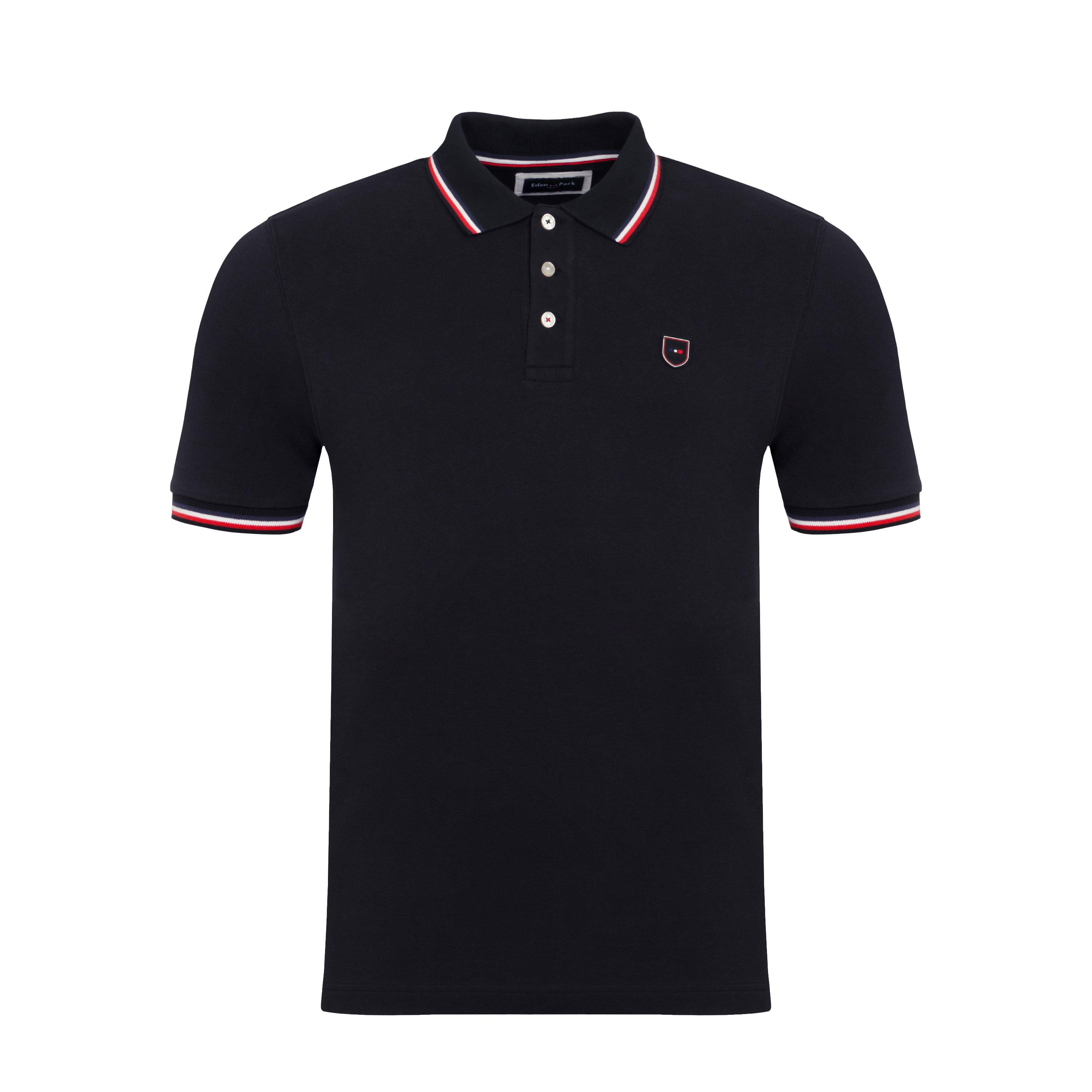 Crafted in cotton pique, this short-sleeved polo shirt is lightweight, and a pleasure to wear. It has a partially-open collar with oval signature buttons. It is enhanced by an oval badge on the chest and tricolour stripes on the collar, slits and bottom sleeves..In pique cotton.Regular Fit.Three-button polo collar.Signature oval buttons.Tricolour stripes on collar.Eden Park inscription on back collar.Tricolour Eden Park badge on chest. Ribbed bottom sleeves with tricolour stripes.Rectangular tricolour Eden Park badge on back.Comfort pleats at the hem.
