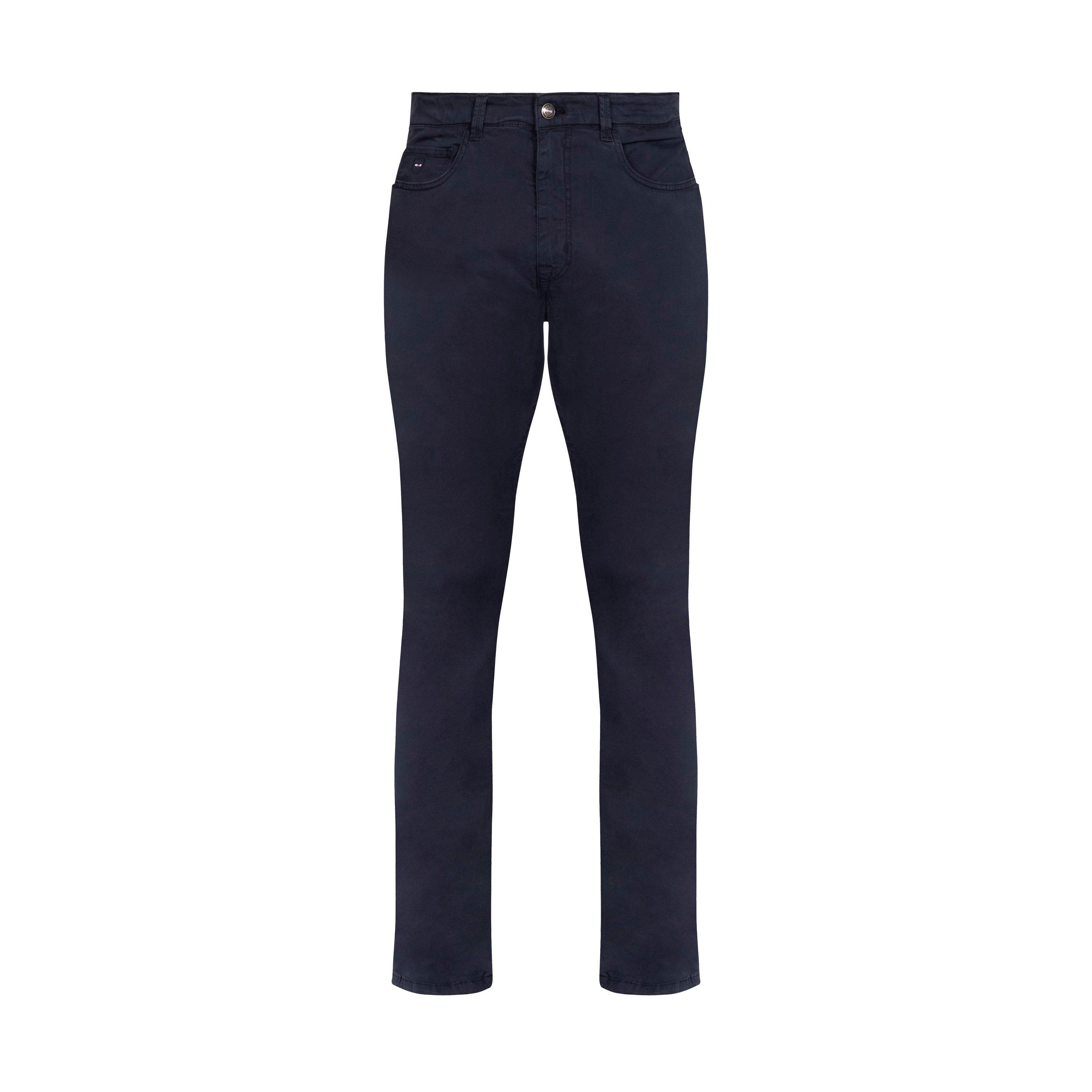 Designed like five-pocket jeans, these straight-cut trousers have what it takes to become an essential. Crafted in stretch cotton serge, this comfortable pair features exquisite finishes. For a chic, casual allure, add a white shirt and a pair of solid moccasins./Stretch cotton serge/Regular fit/Button fly/5-pocket jean assembly/Signature buttons/Tricolour band accent on back pocket//Leather jacron with embossed bow tie on back/Embroidered pink bow tie logo badge on ticket pocket.