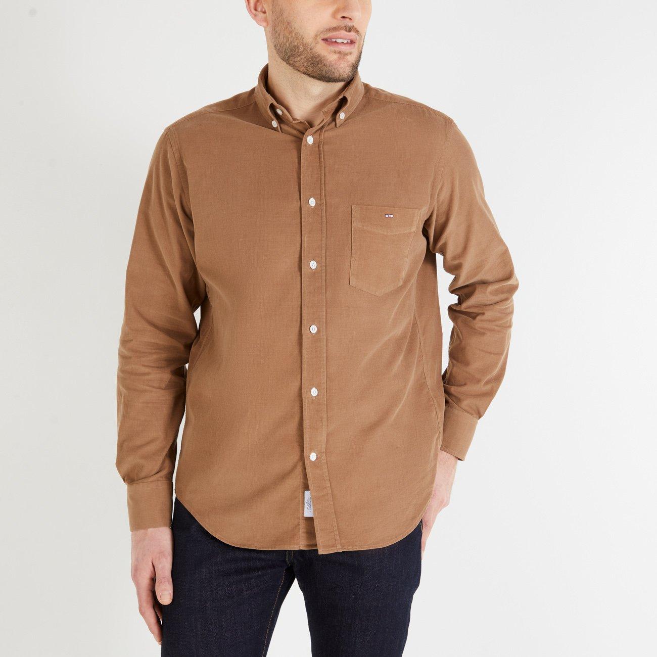 Corduroy shirt with unique Italian fabric, has a very soft and warm touch. It has a sutil breast pocket, with an embroidered bow tie. Cotton. Regular fit. Made in Italy fabric. Button down collar. Oval buttons. Patch breast pocket with embroidered bow tie logo. Back comfort pleat. Rounded hem.