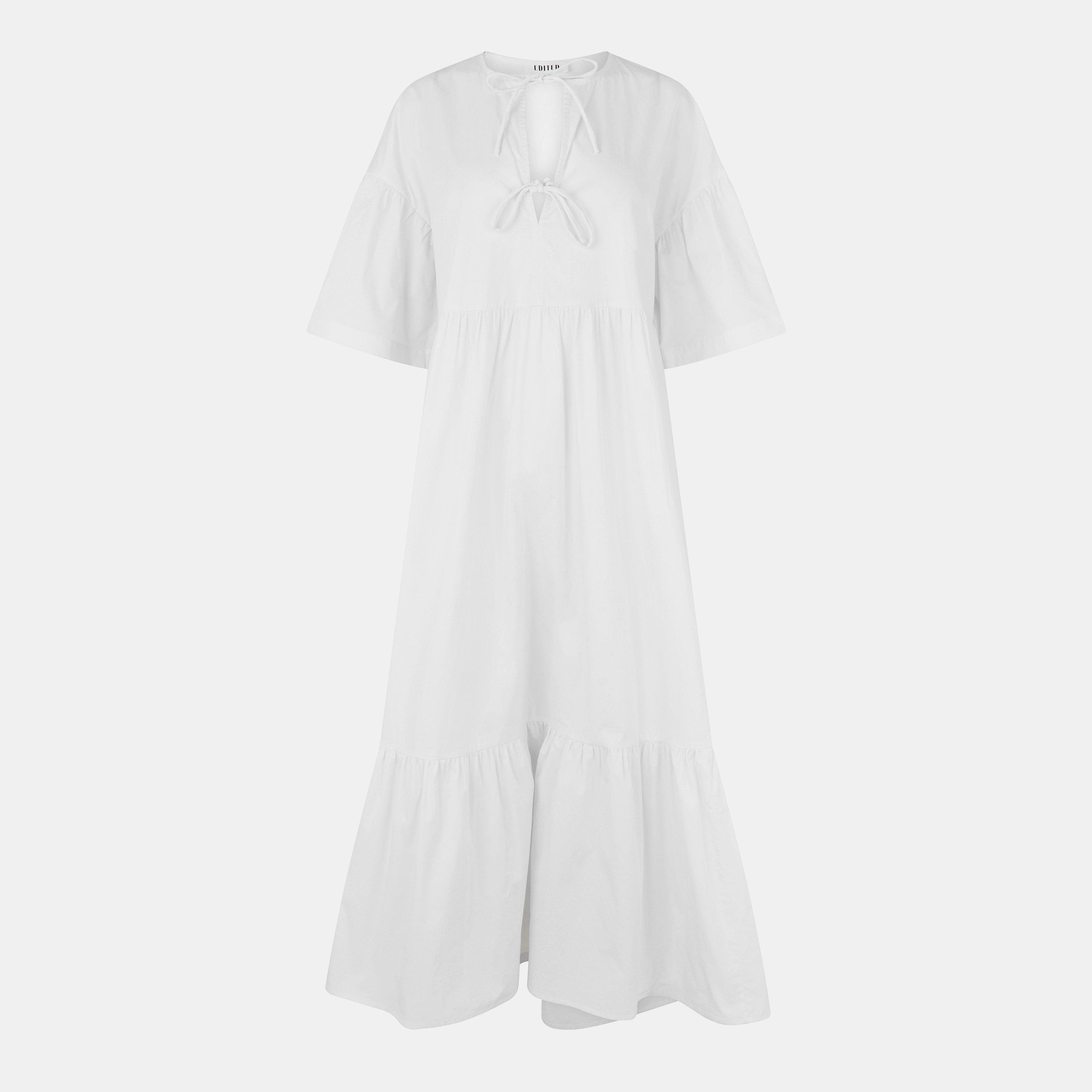 Short sleeved tie neck detail long dress with tiered hem Upper material: 100% cotton (organic)