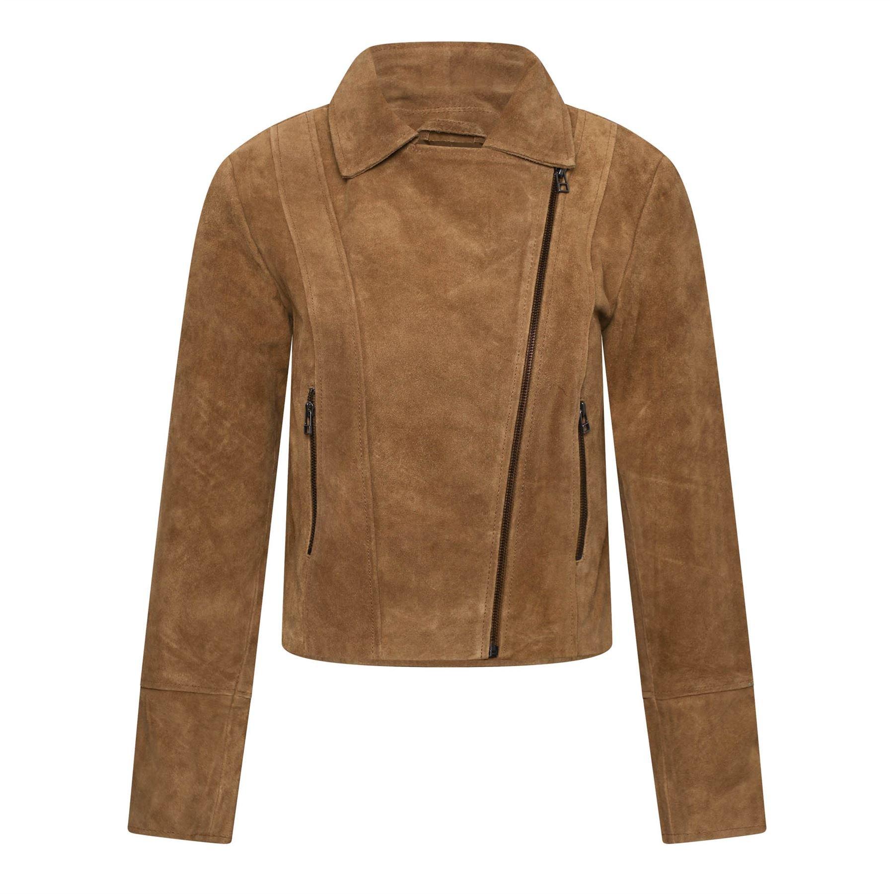 Womens Elle Bonnie Suede Biker Jacket in tan