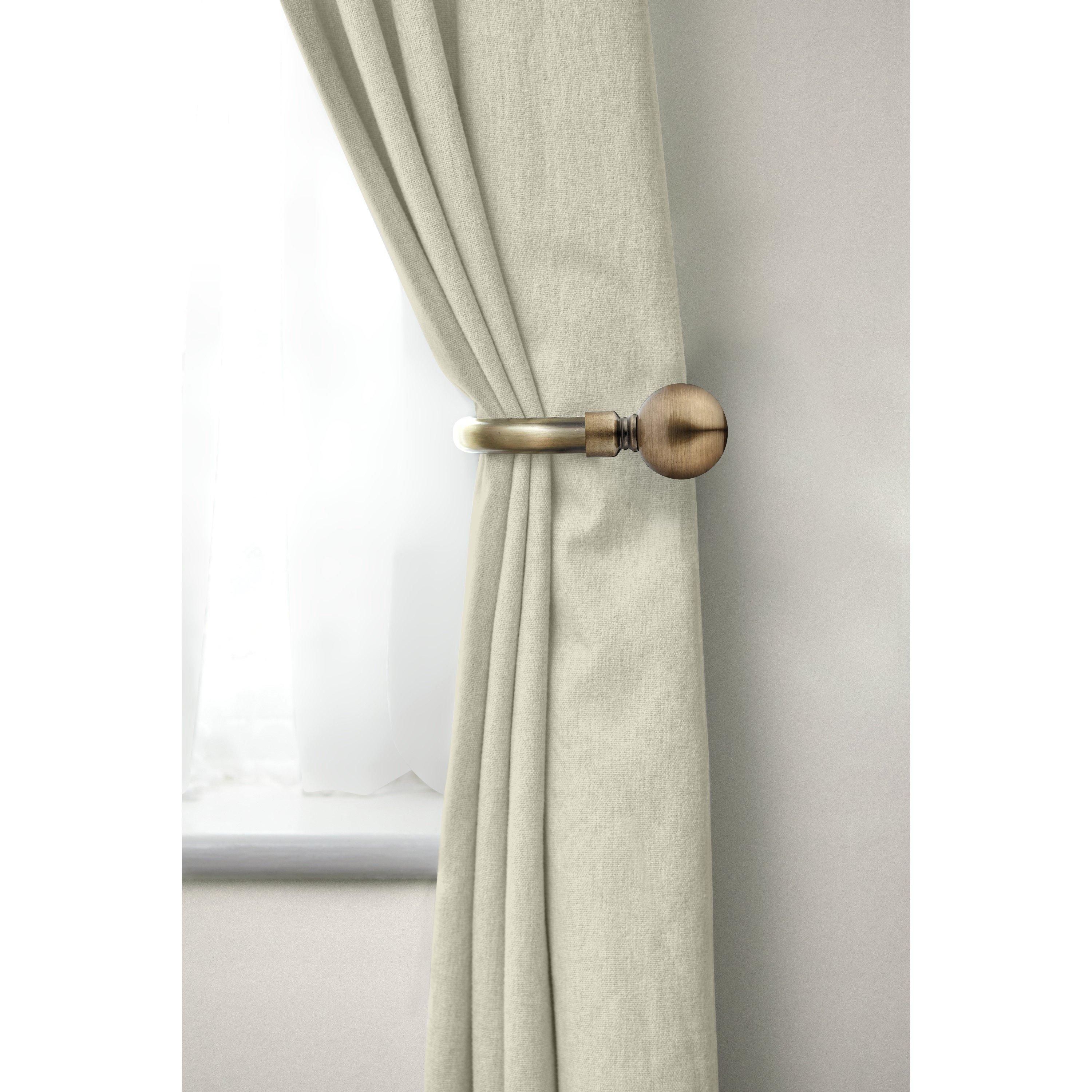 EASY TO MOUNT: Our easy fit tieback set is quick and simple to install at your window. full instructions included. DURABLE - Rust and corrosion proof finish on all components STRONG - This 19mm diameter metal holdback set is suitable for heavy fabrics, curtains and voiles COMPLETE YOUR LOOK - Matching curtain poles are available to complete your look. CONTENTS: 2 x Holdbacks, 2 x Finials, 1 x Fittings Pack, 1 x Fitting instructions