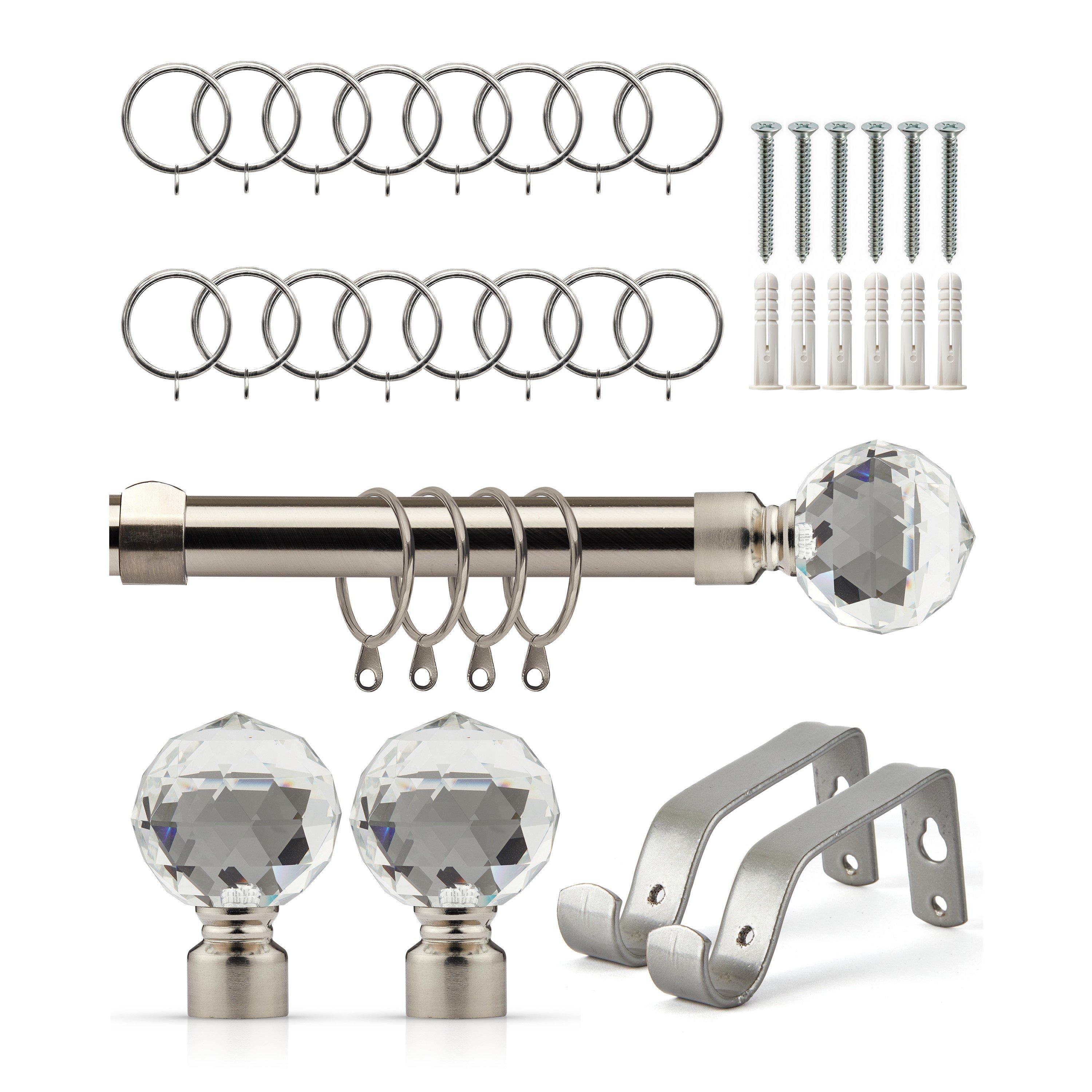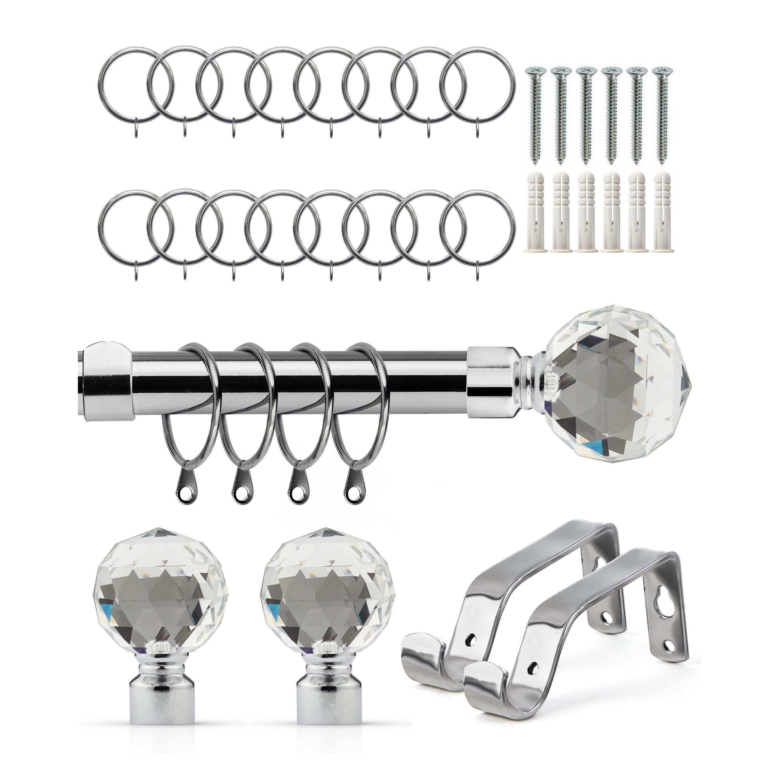 ADJUSTABLE: The extendable pole can be easily adjusted to fit your desired width DURABLE: Rust and corrosion proof finish on all components STRONG: This 16- diameter extendable metal pole is suitable for heavy fabrics, curtains and voiles EASY TO MOUNT: Our easy fit curtain pole is quick and simple to install at your window - full instructions included. CONTENTS: Curtain Pole, Finials, Curtain rings, Brackets, Fittings Pack, Fitting instructions (matching holdbacks also sold separately) Our poles come in an attractive range of finishes and designs, with matching holdbacks sold separately, should you want to complete your look. This pole is designed for any type of curtain (eyelet or pencil pleat) and includes optional curtain rings for the purpose of hanging pencil pleat curtains. Suitable to mount on any window type, bringing a sophisticated look to any room.