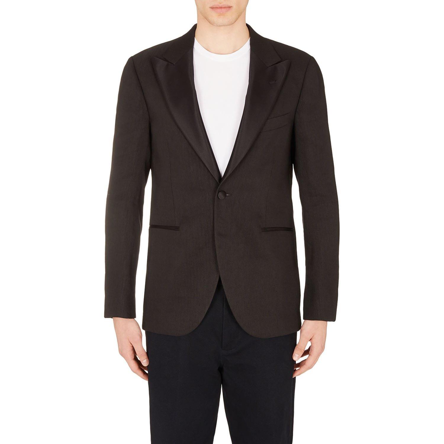 Satin lapels. Single-breasted design with a one-button closure.