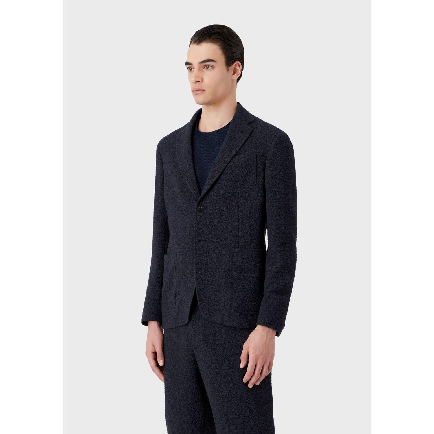 Peaked lapels. Two button closure. Chest pockets. Front pockets. Fully lined.